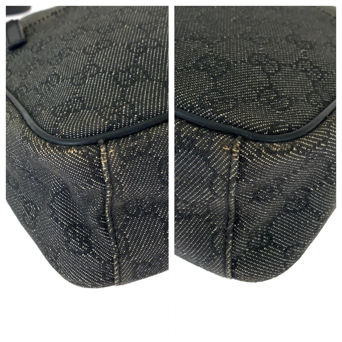 GUCCI Shoulder Bag 3136 GG canvas Grey Black SilverMetal Shoulder Bag pochette Women Used Authentic