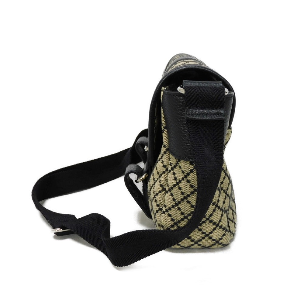 GUCCI Shoulder Bag 374429 Diamante canvas x calf leather (embossed) beige Calfskin Black Crossbody Logo embossing Diamante Mesher Bag unisex(Unisex) Used Authentic