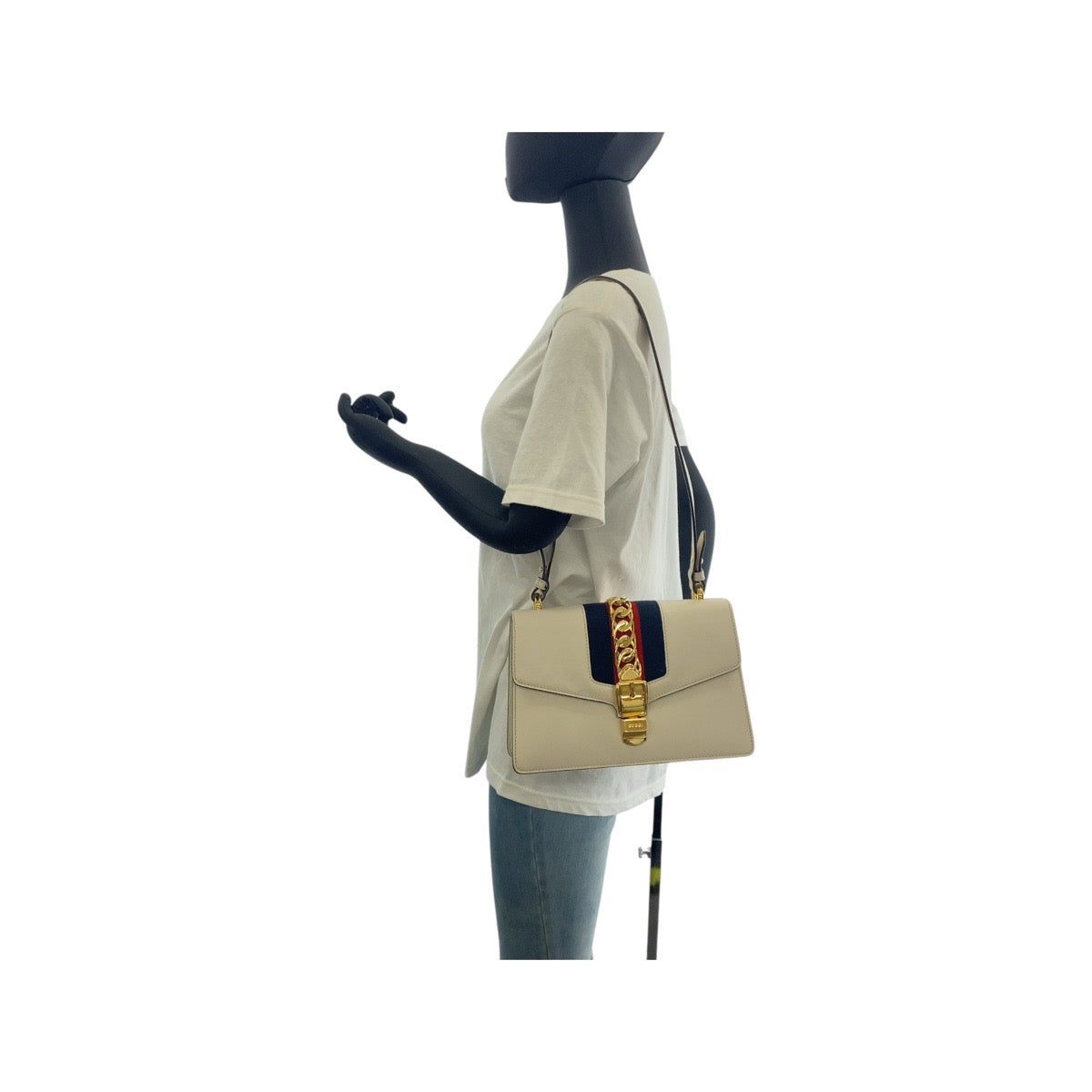 GUCCI Shoulder Bag 421882 leather Ivory White Gold Metal Shoulder Bag Sherry line Silvi Women Used Authentic