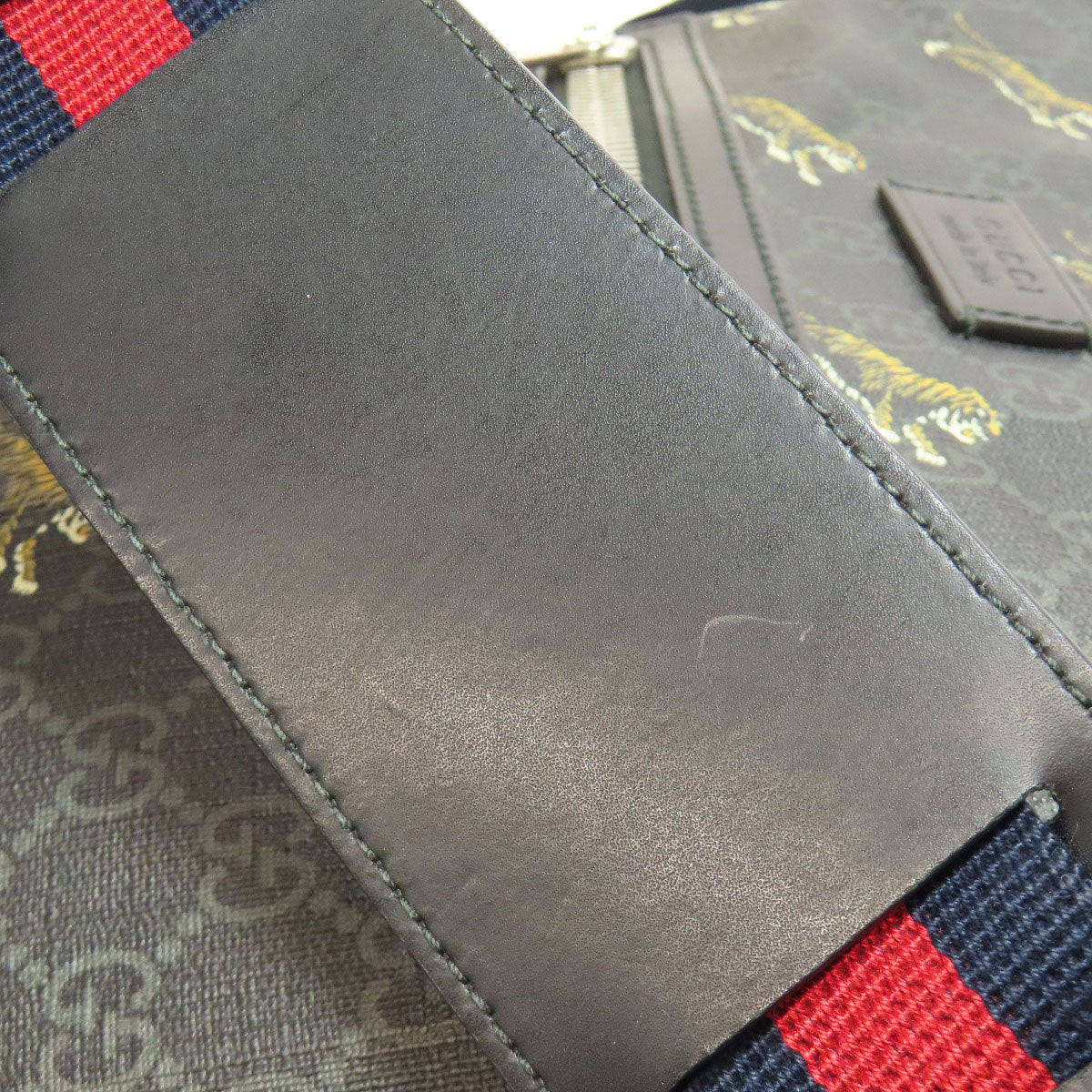 GUCCI Shoulder Bag 474137 PVC black GG Supreme Tiger Print Women Used Authentic