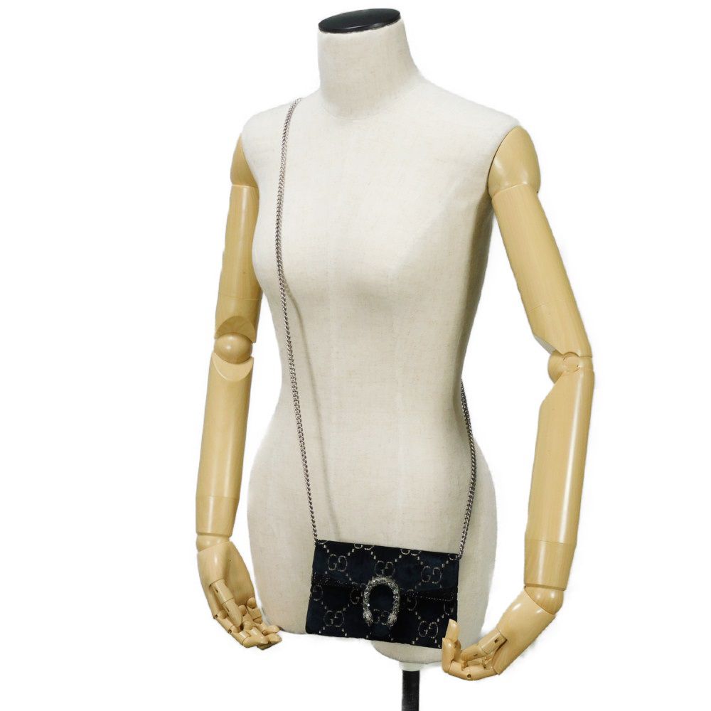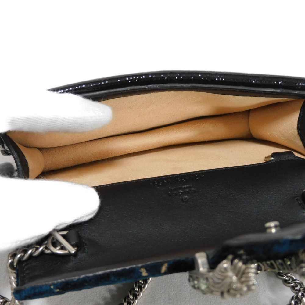GUCCI Shoulder Bag 476432 9TIBN 4264 Velvet x Patent Leather x Calf Leather blue Tiger Head Crystal Good Condition GG velvet Dionysus Super Mini Bag Women Used Authentic