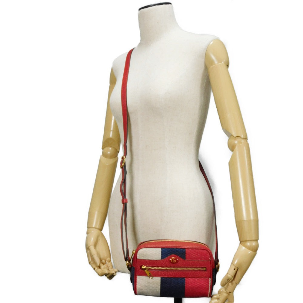GUCCI Shoulder Bag 517350 Baia de la linen canvas x calf leather Tricolor Baiadera Linen Trio-Colour Crossbody Double G Ophidia mini bag unisex(Unisex) Used Authentic