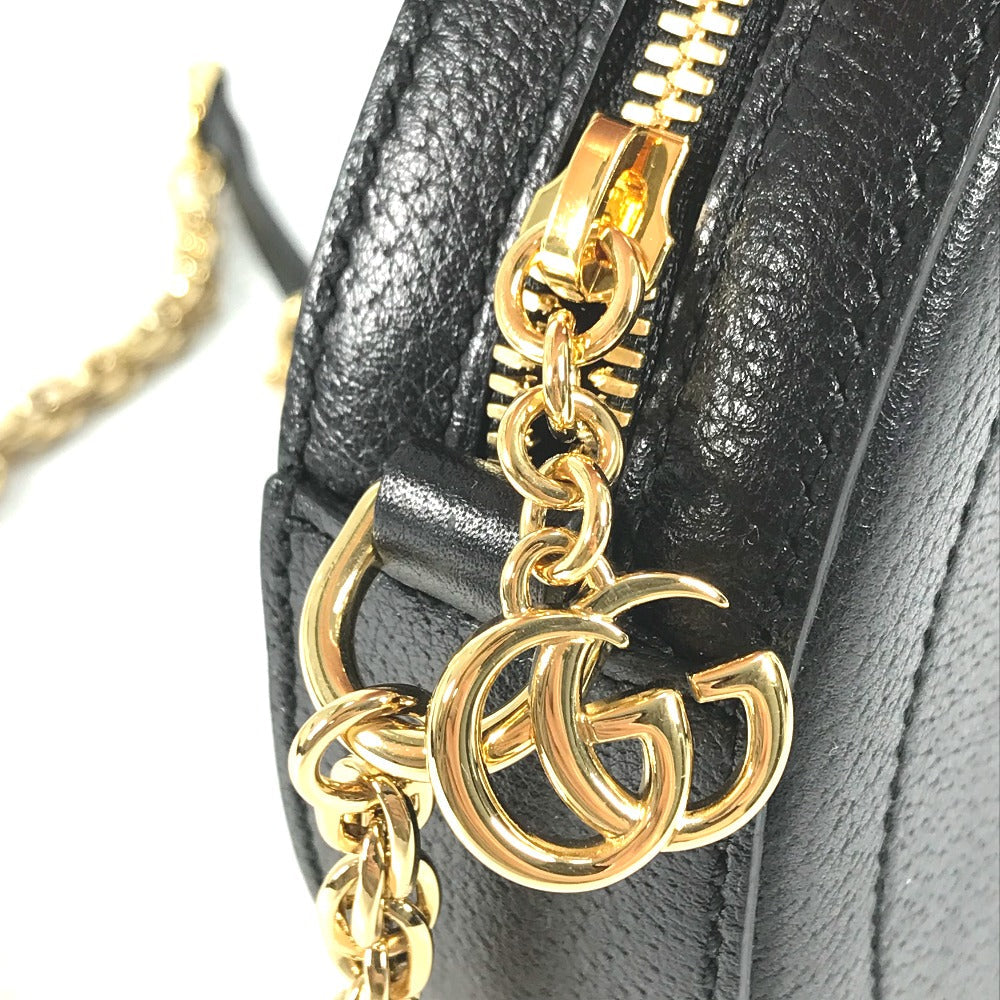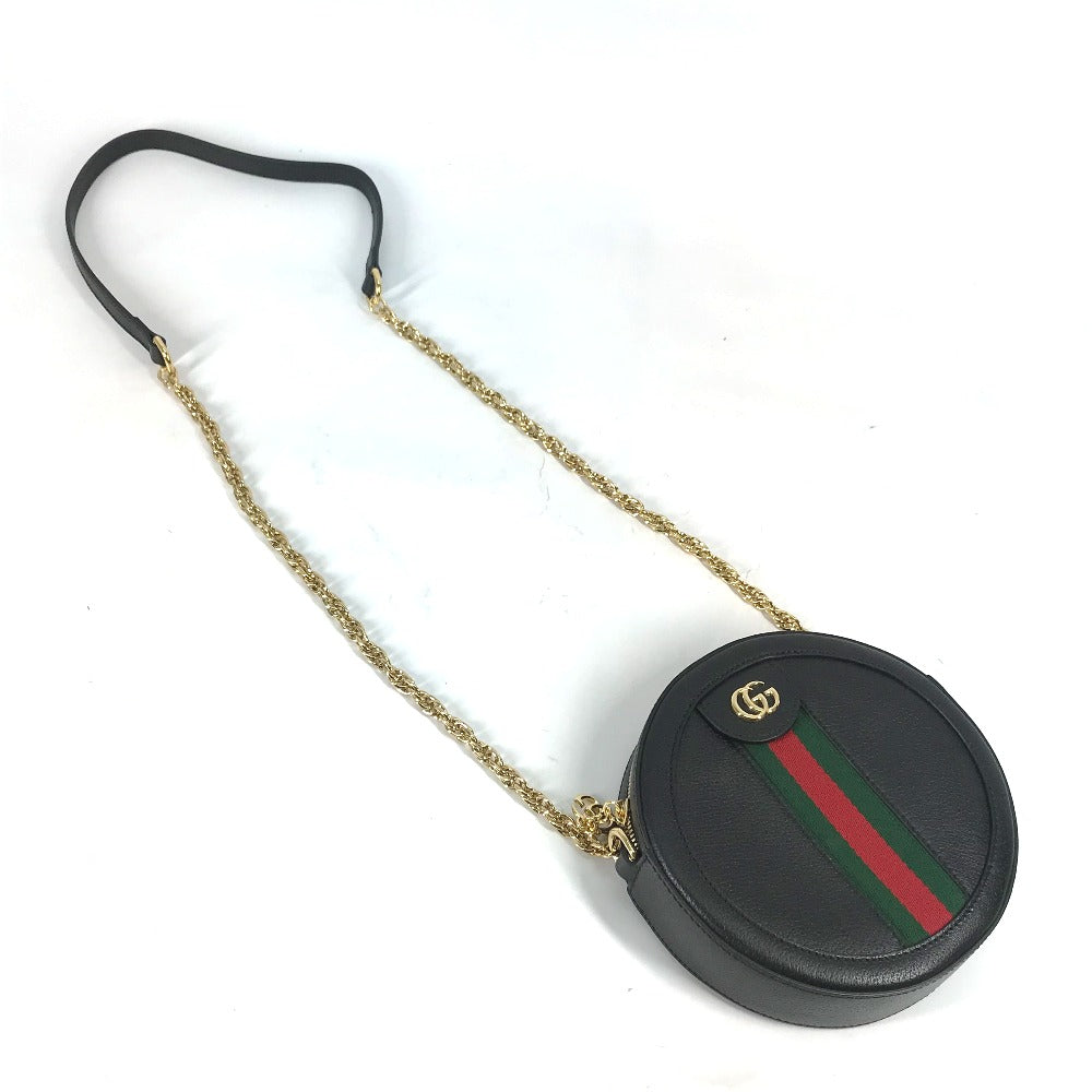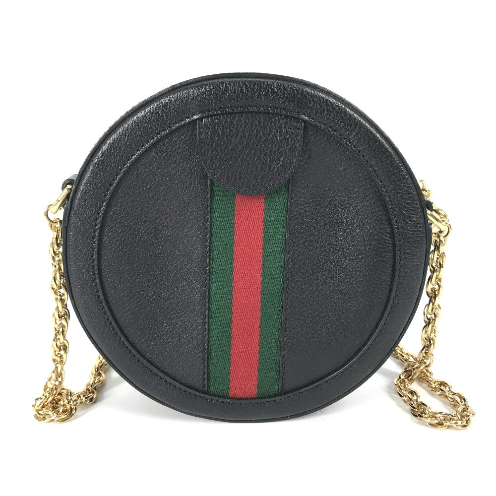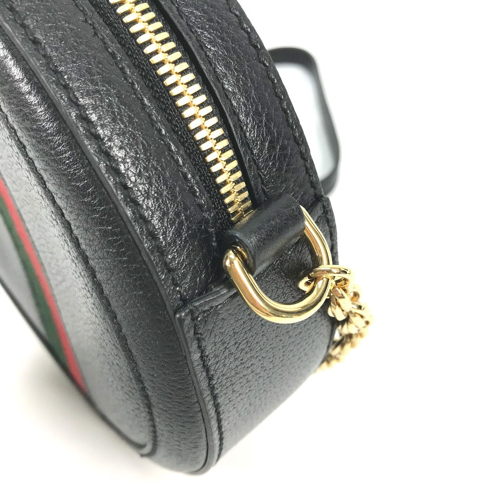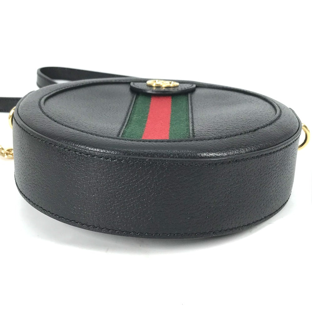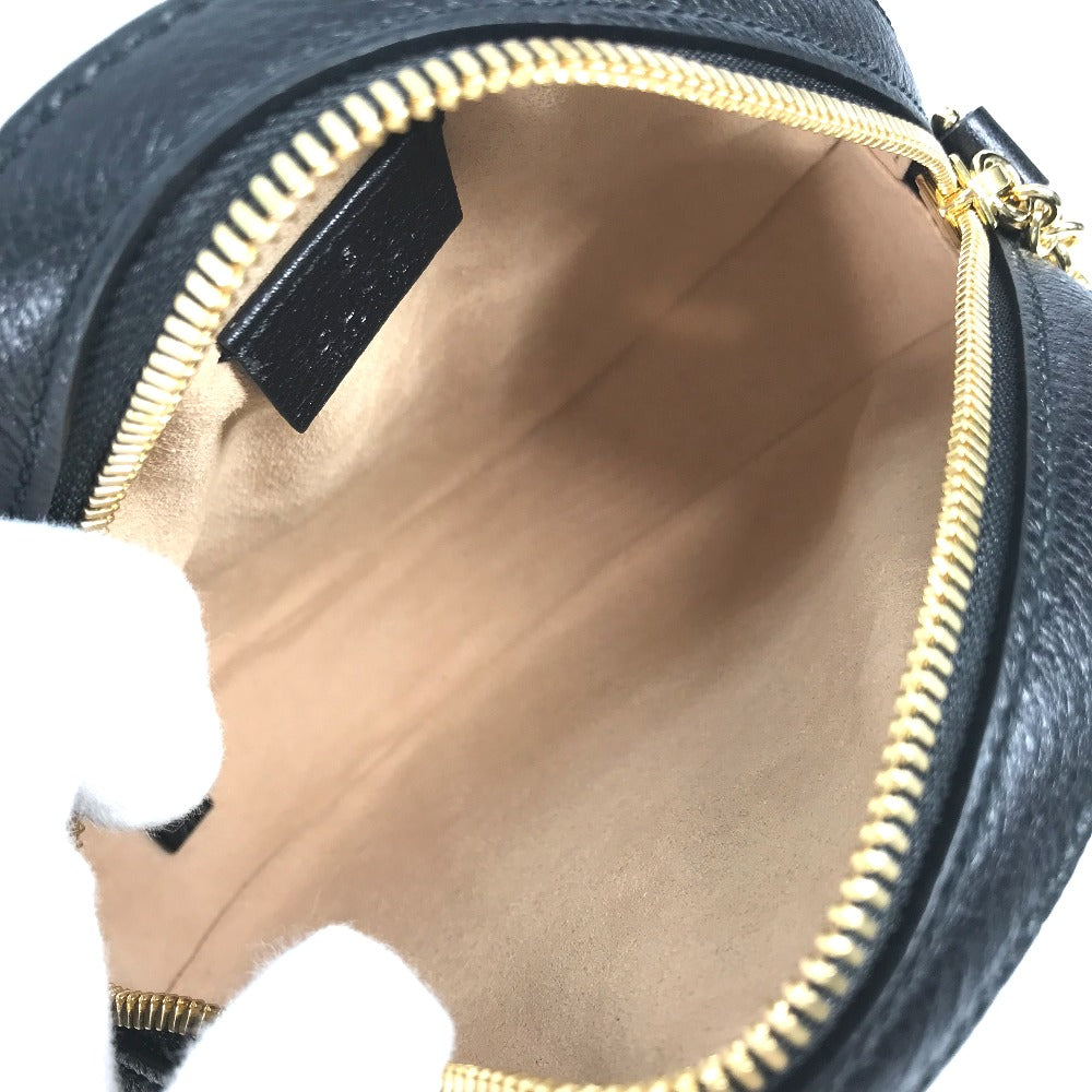 GUCCI Shoulder Bag 550618 leather black Shelly line GG Ophidia mini round Women Used Authentic