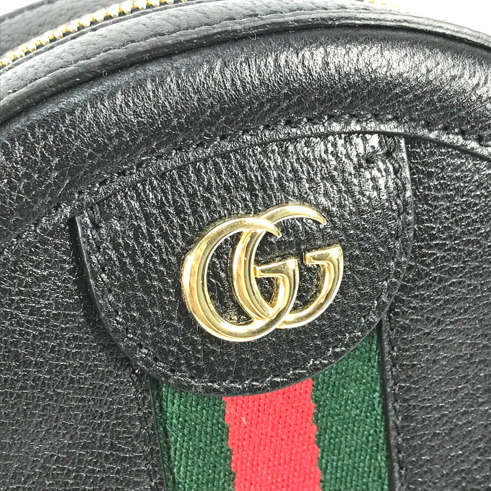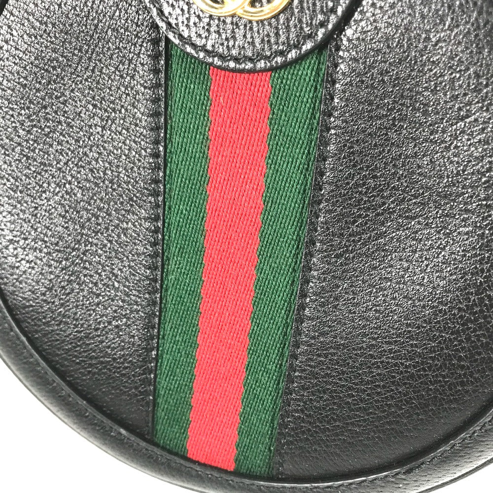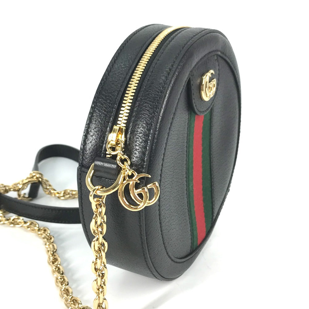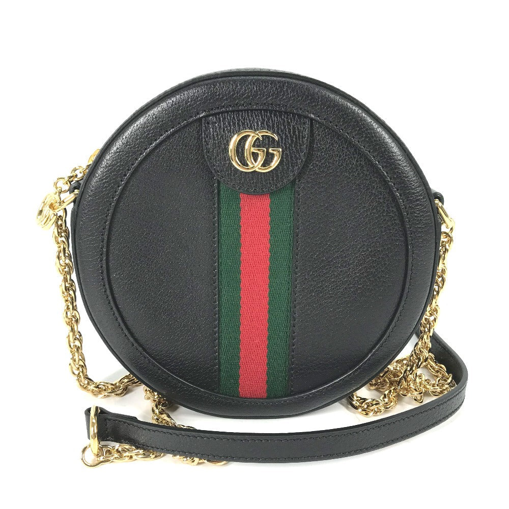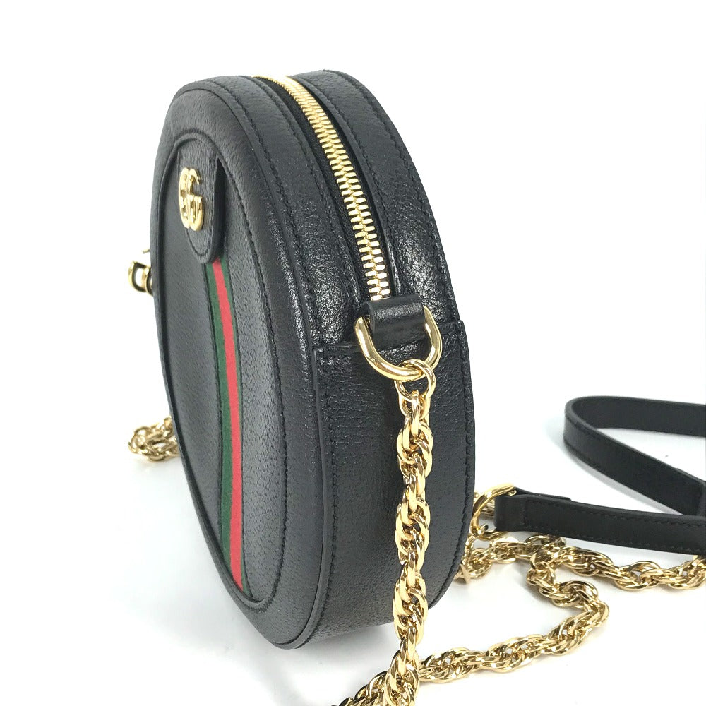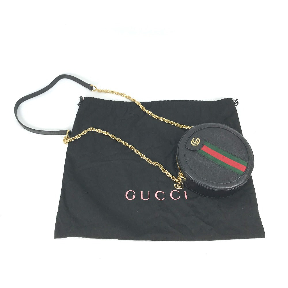 GUCCI Shoulder Bag 550618 leather black Shelly line GG Ophidia mini round Women Used Authentic