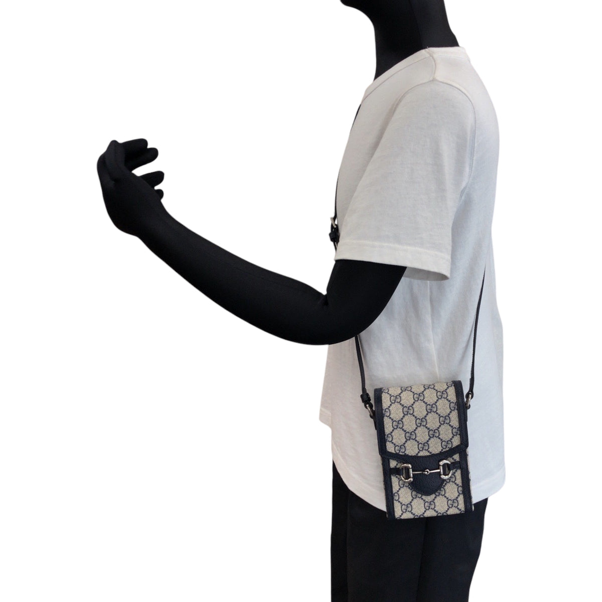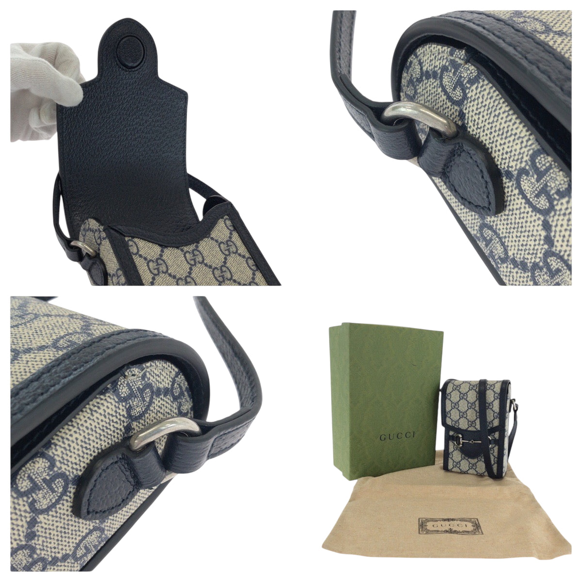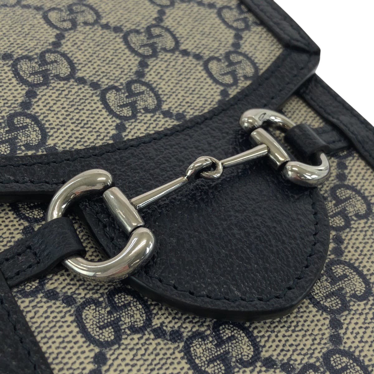 GUCCI Shoulder Bag 625615 GG Supreme Canvas Gray Navy SilverMetal 1955 Horsebit