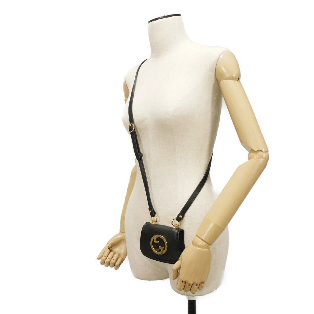 GUCCI Shoulder Bag 698635 UXX0G 1000 Calf leather black Interlocking G Frondy Card Case Wallet