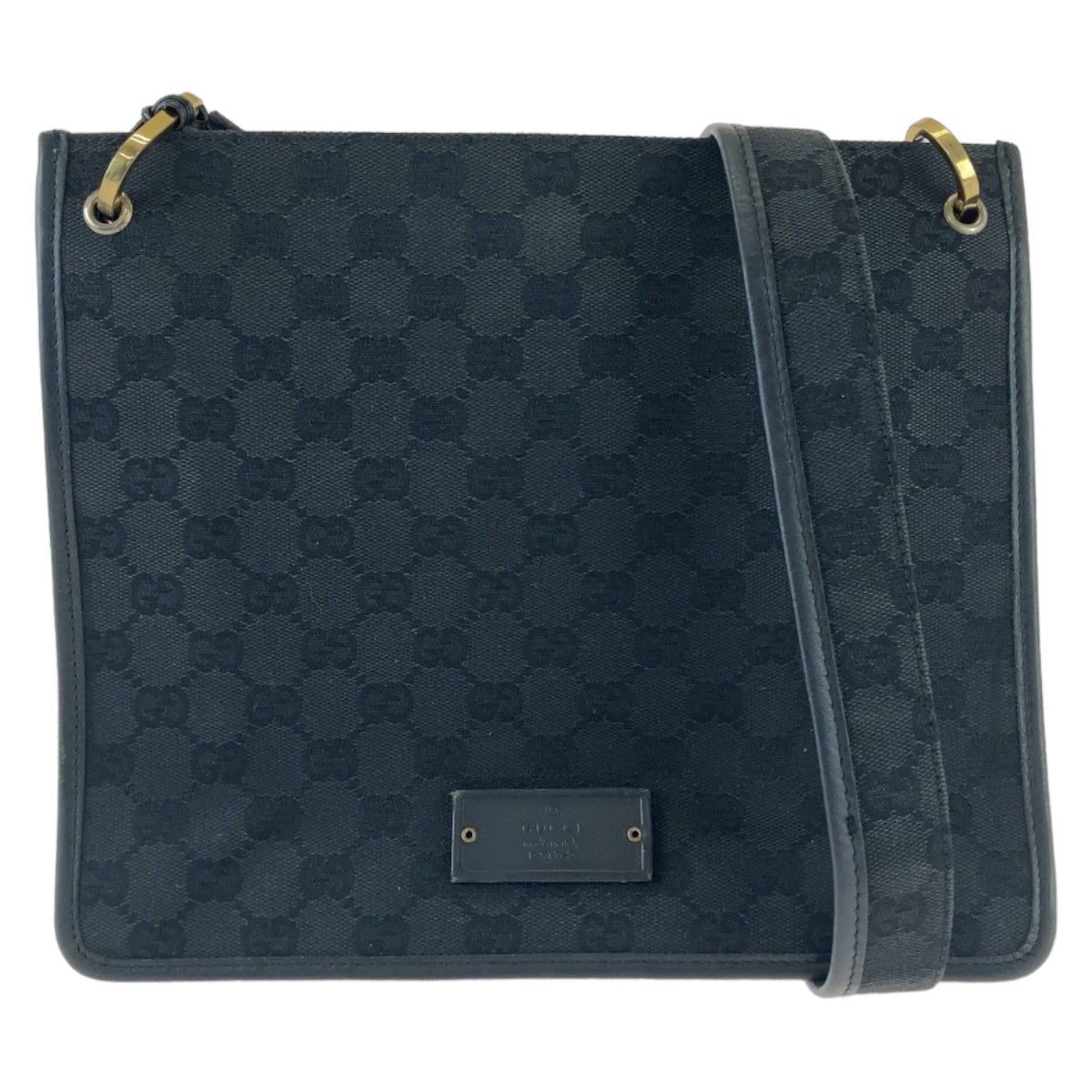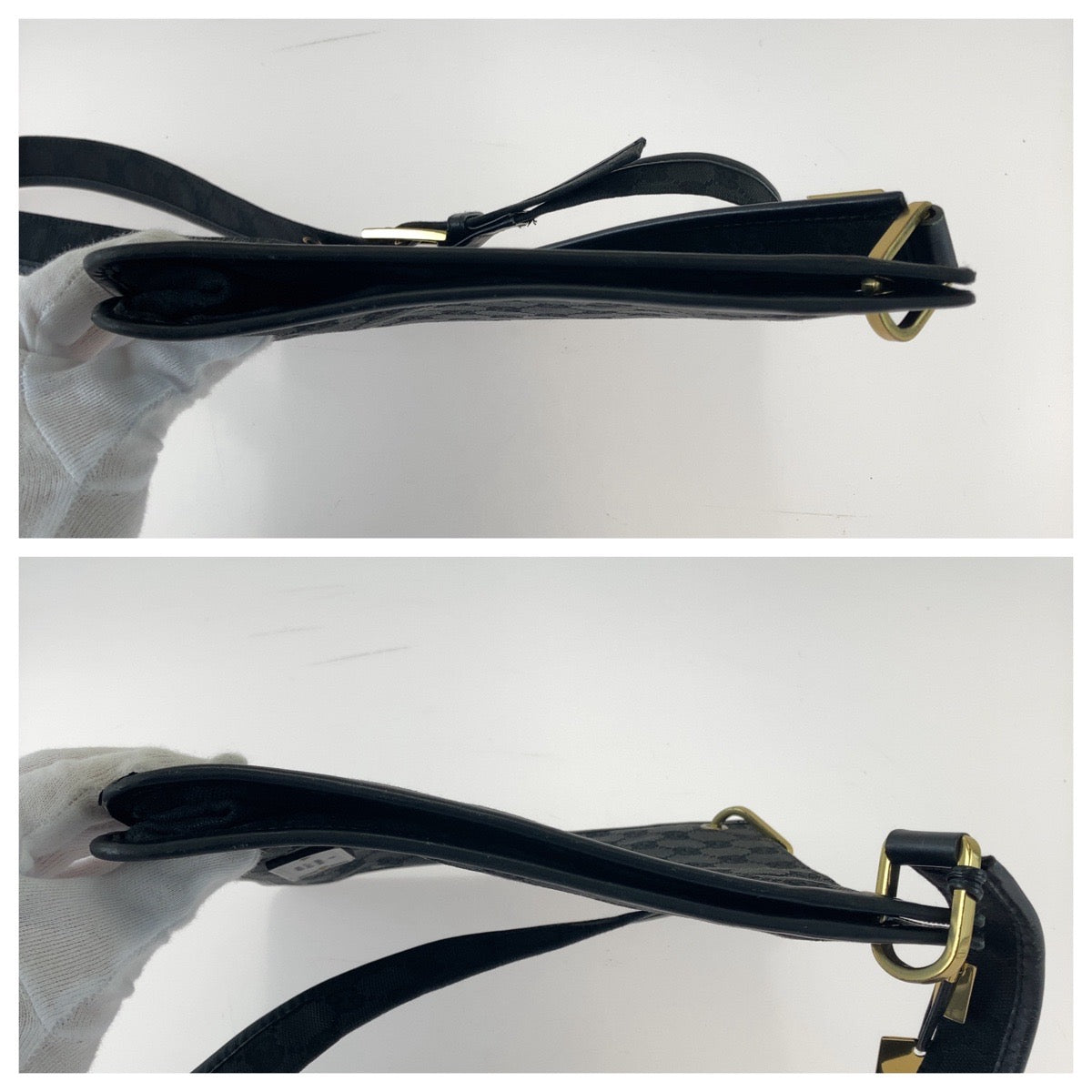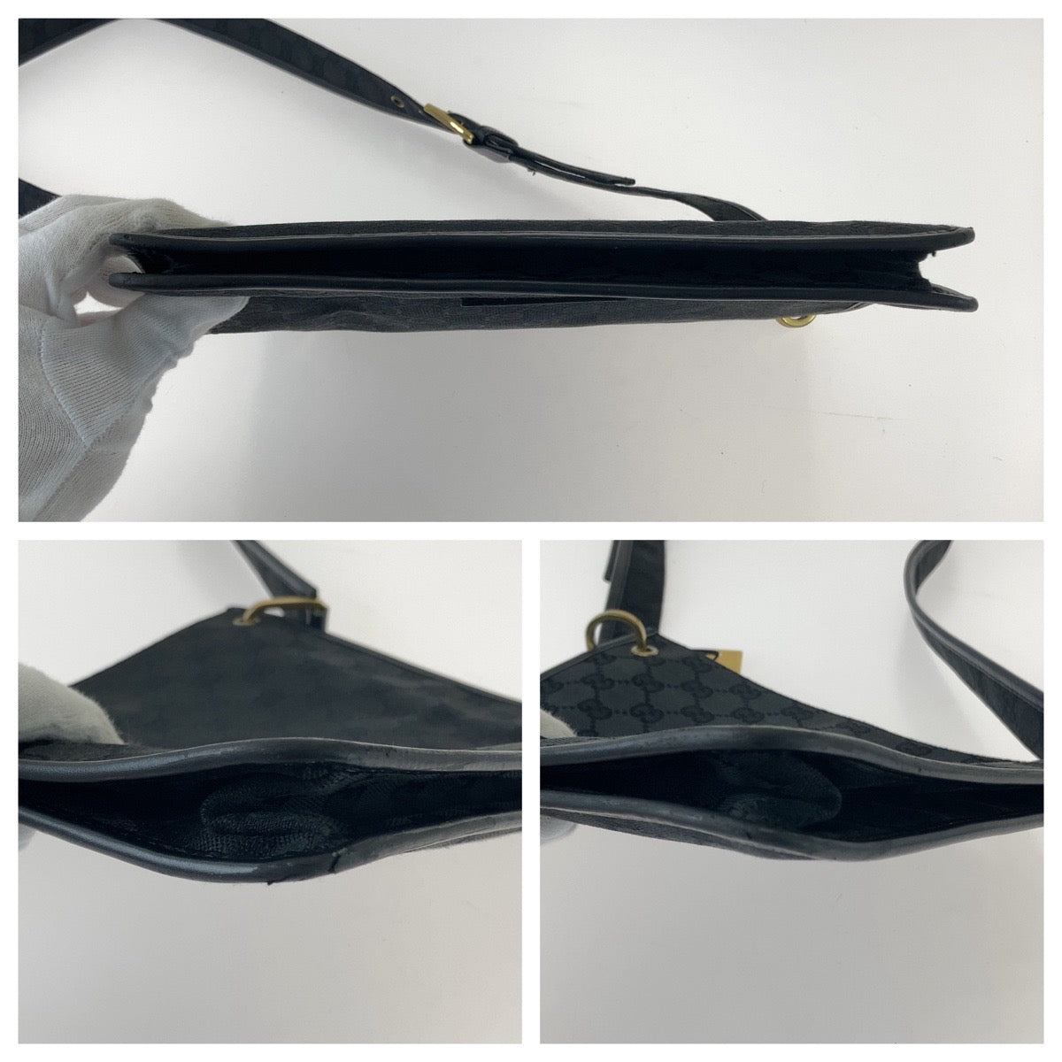 GUCCI Shoulder Bag 91762 GG canvas, leather Black Gold Metal Crossbody Shoulder Bag Pochette mens Used Authentic