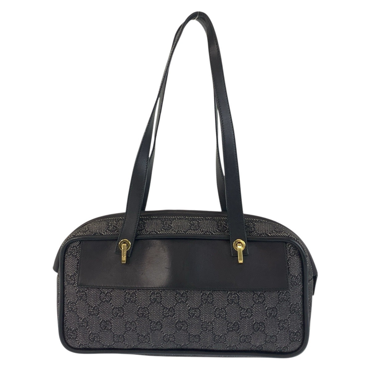GUCCI Shoulder Bag 92729 GG canvas, leather Black GoldMetal Women Used Authentic