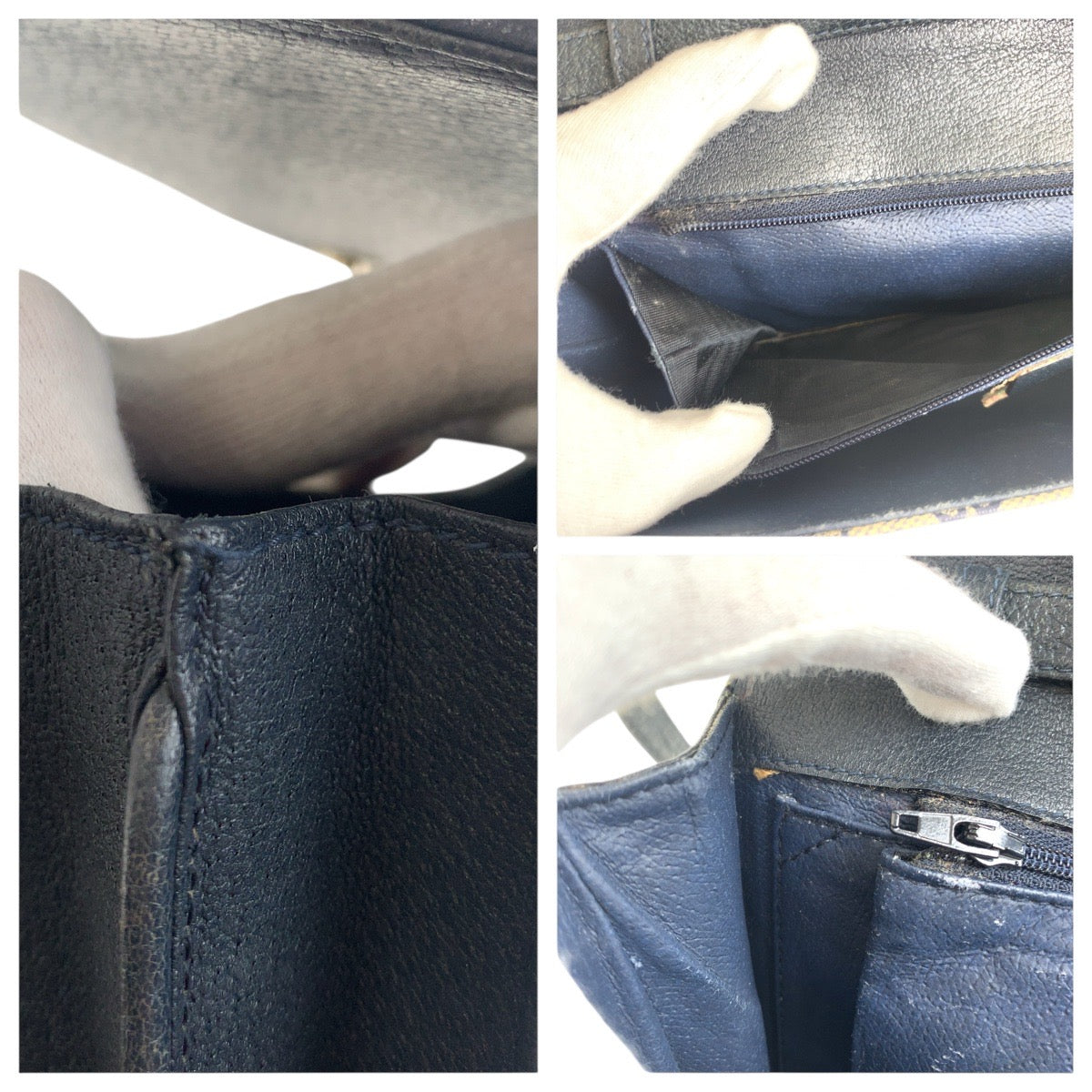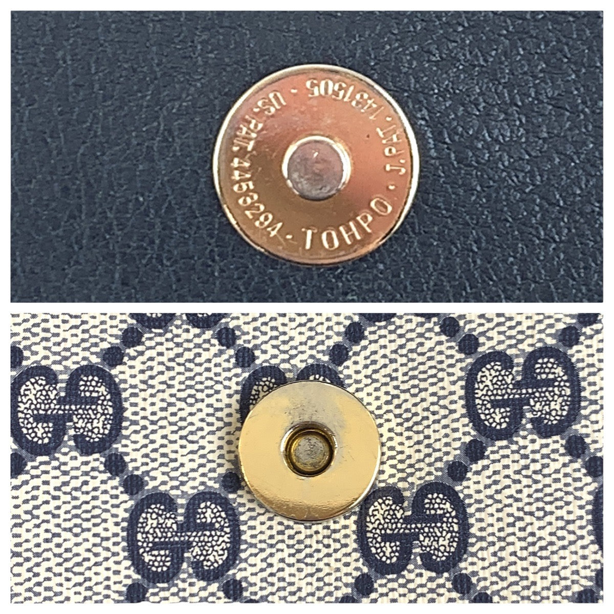 GUCCI Shoulder Bag 94 02 050 GG Supreme Canvas Navy Gray Gold Metal Old Gucci