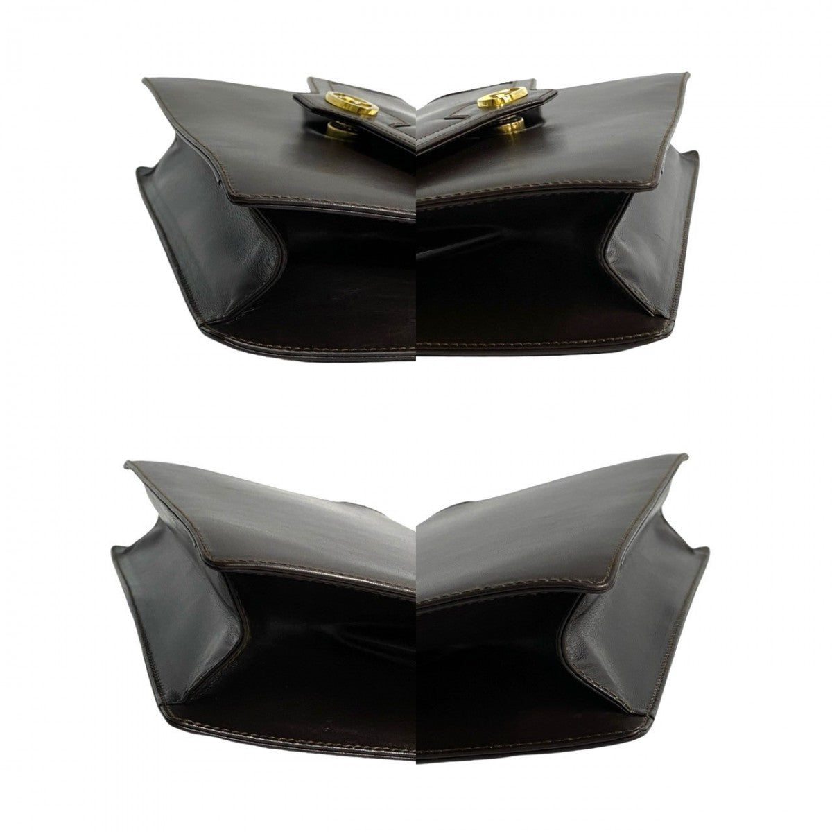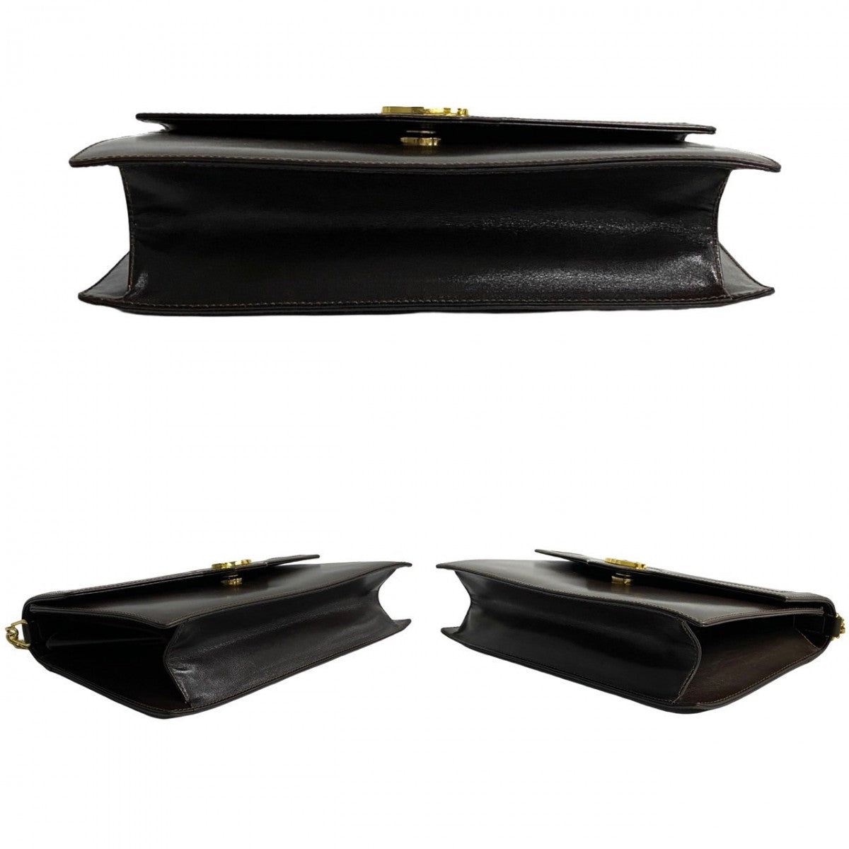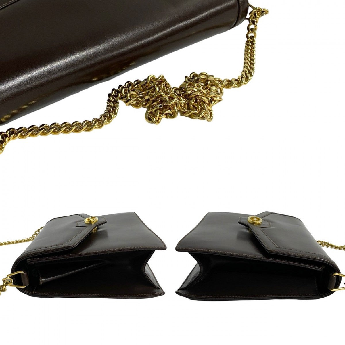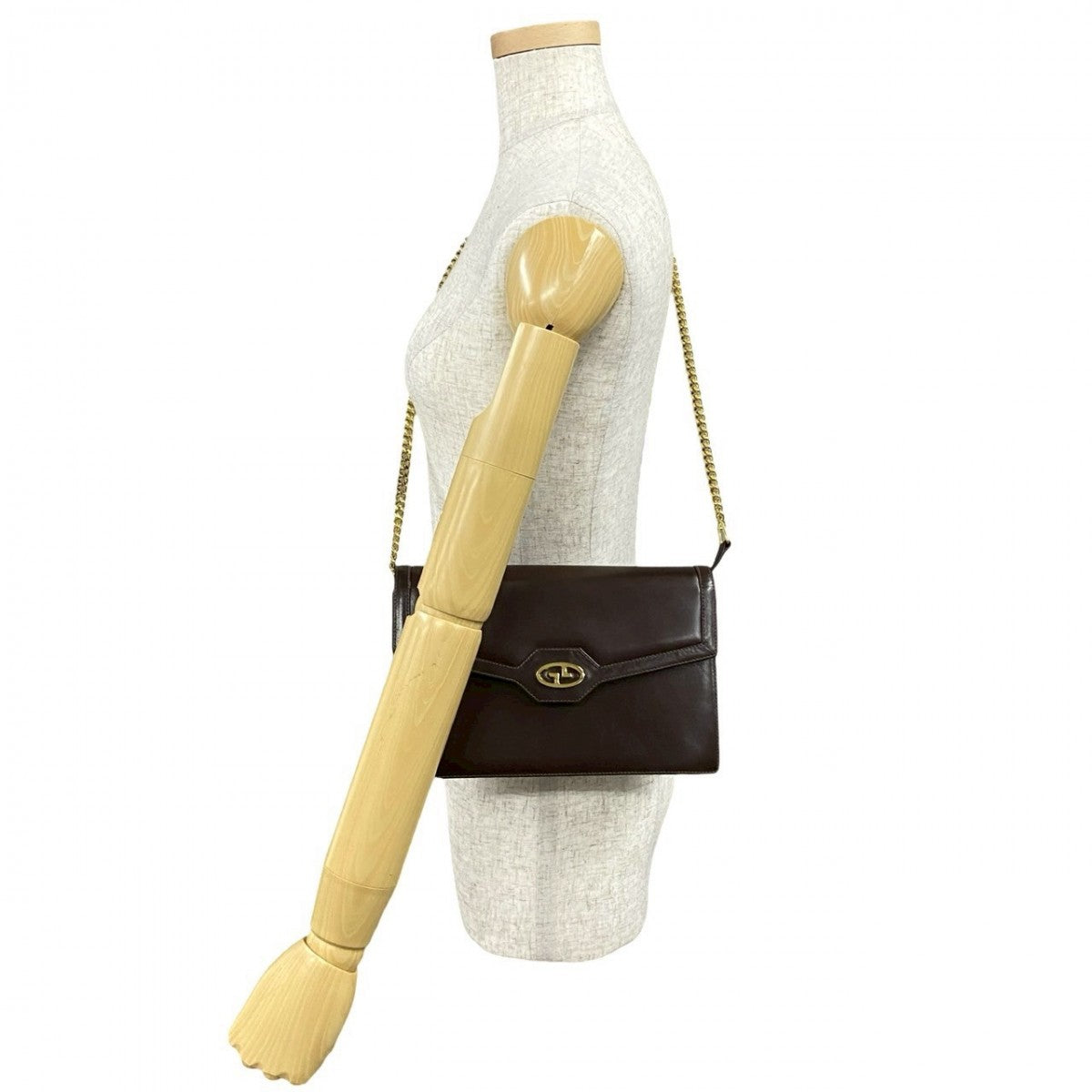 GUCCI Shoulder Bag Calfskin, Leather Brown GG logo Metal Women Used Authentic