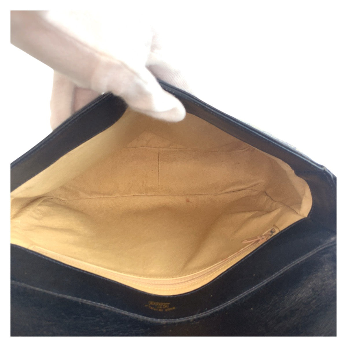 GUCCI Shoulder Bag GG Supreme canvas, leather Gray Navy Gold Metal Shoulder Bag pochette Old Gucci Women Used Authentic
