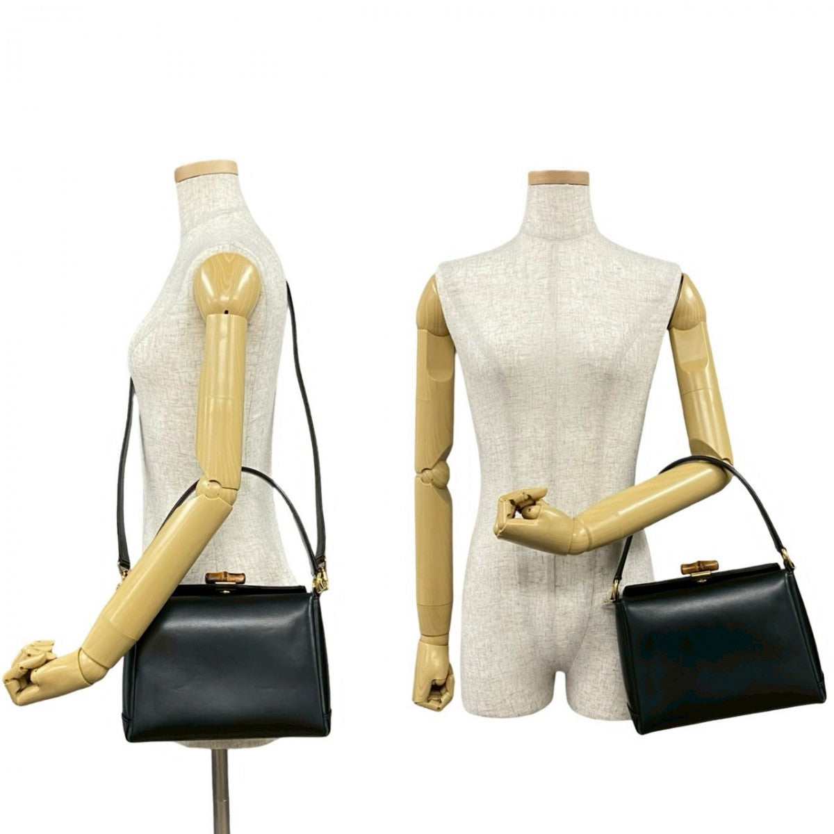 GUCCI Shoulder Bag leather black Bamboo Women Used Authentic
