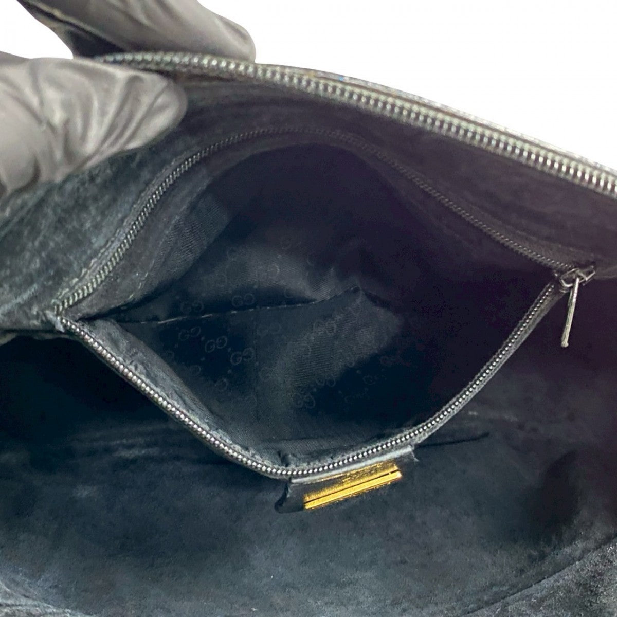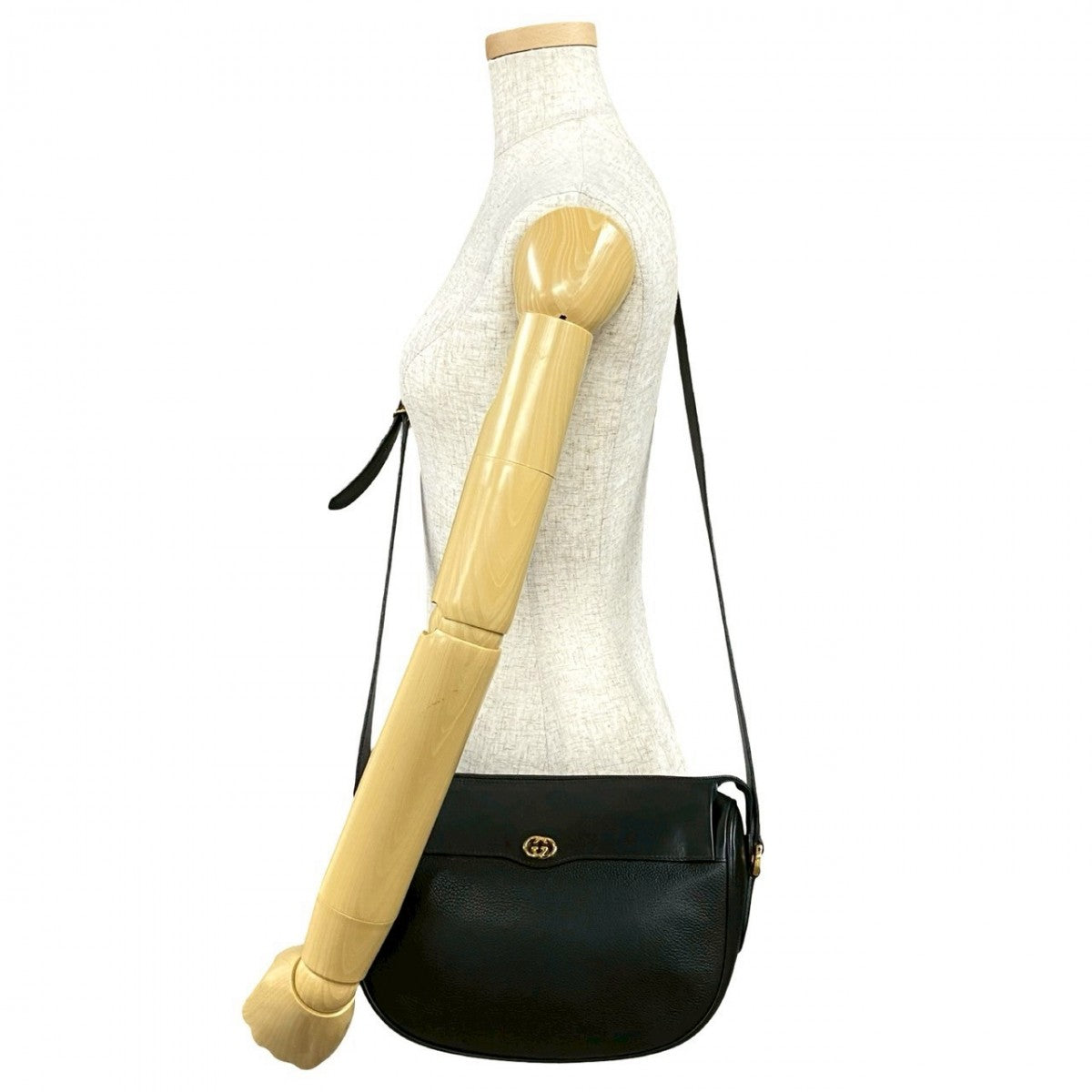 GUCCI Shoulder Bag leather black GG logo Metal Women Used Authentic