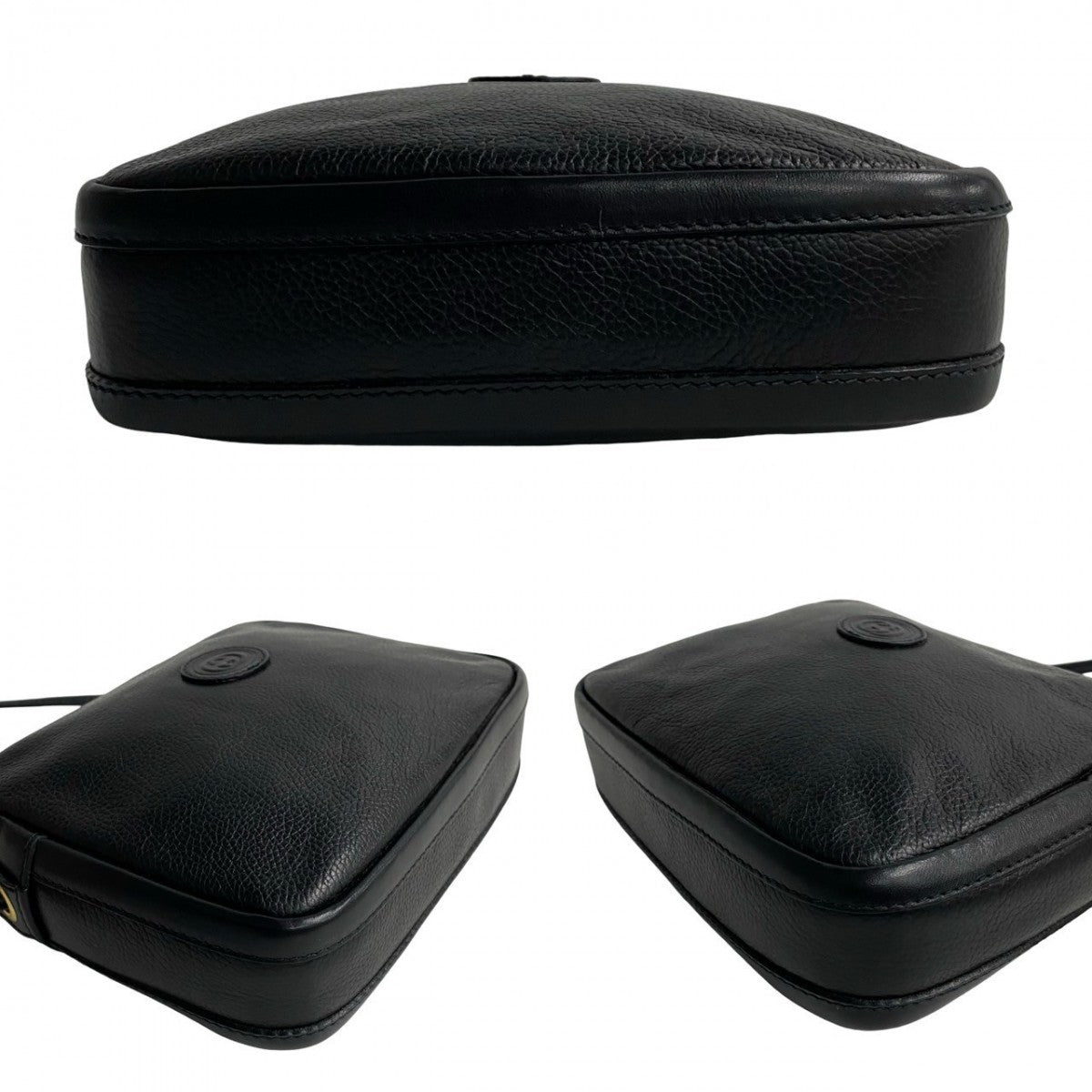 GUCCI Shoulder Bag leather black Old Gucci GG logoMetal Women Used Authentic