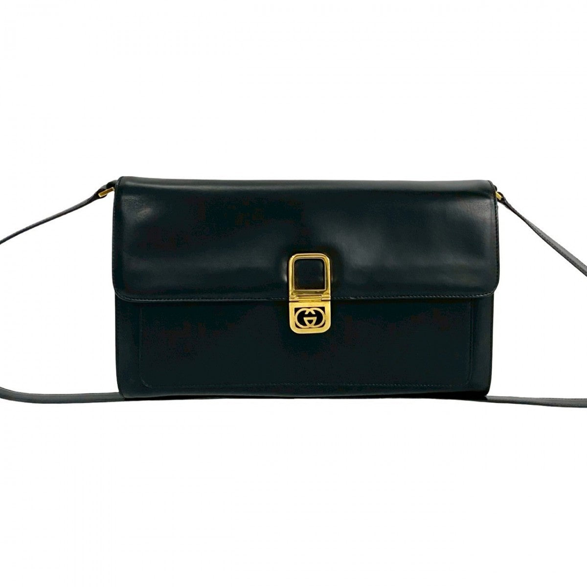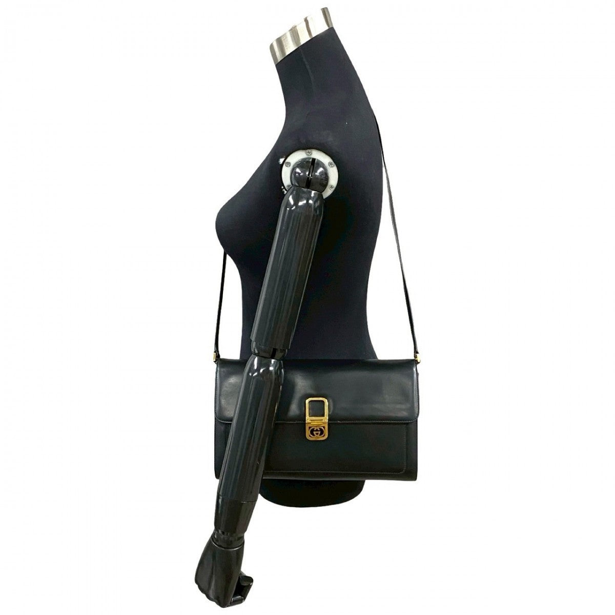 GUCCI Shoulder Bag leather black GG logoMetal Women Used Authentic