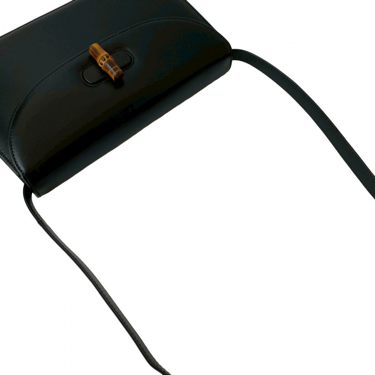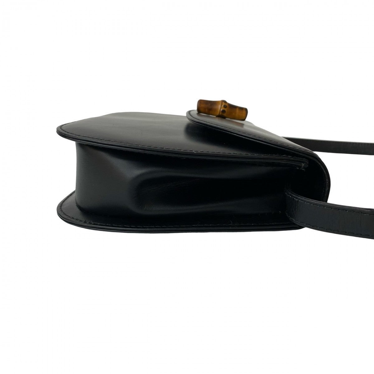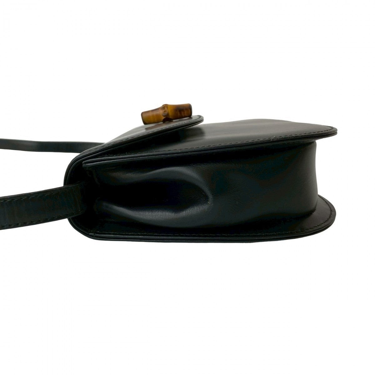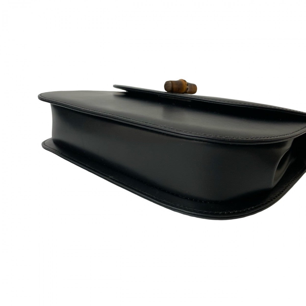 GUCCI Shoulder Bag Leather, Bamboo black Turn lock Bamboo Women Used Authentic