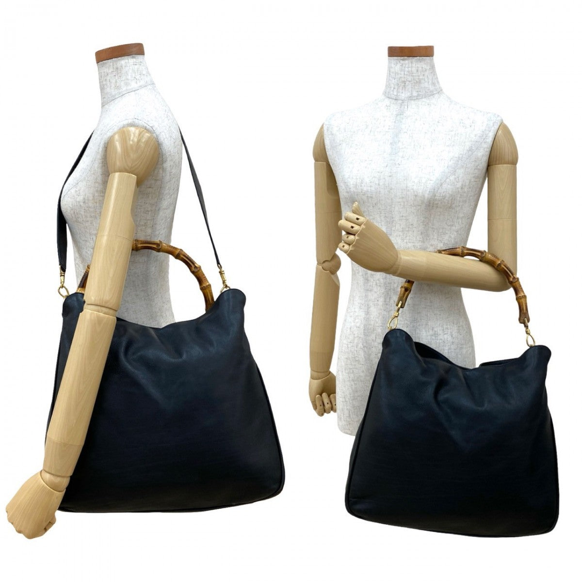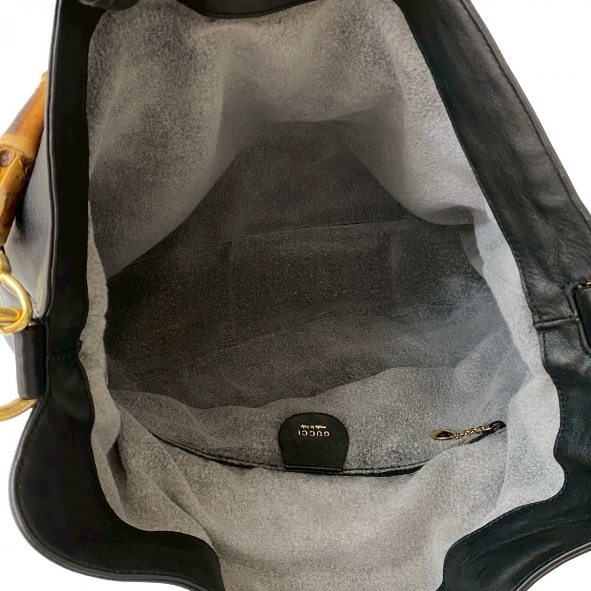 GUCCI Shoulder Bag leather black Bamboo Women Used Authentic