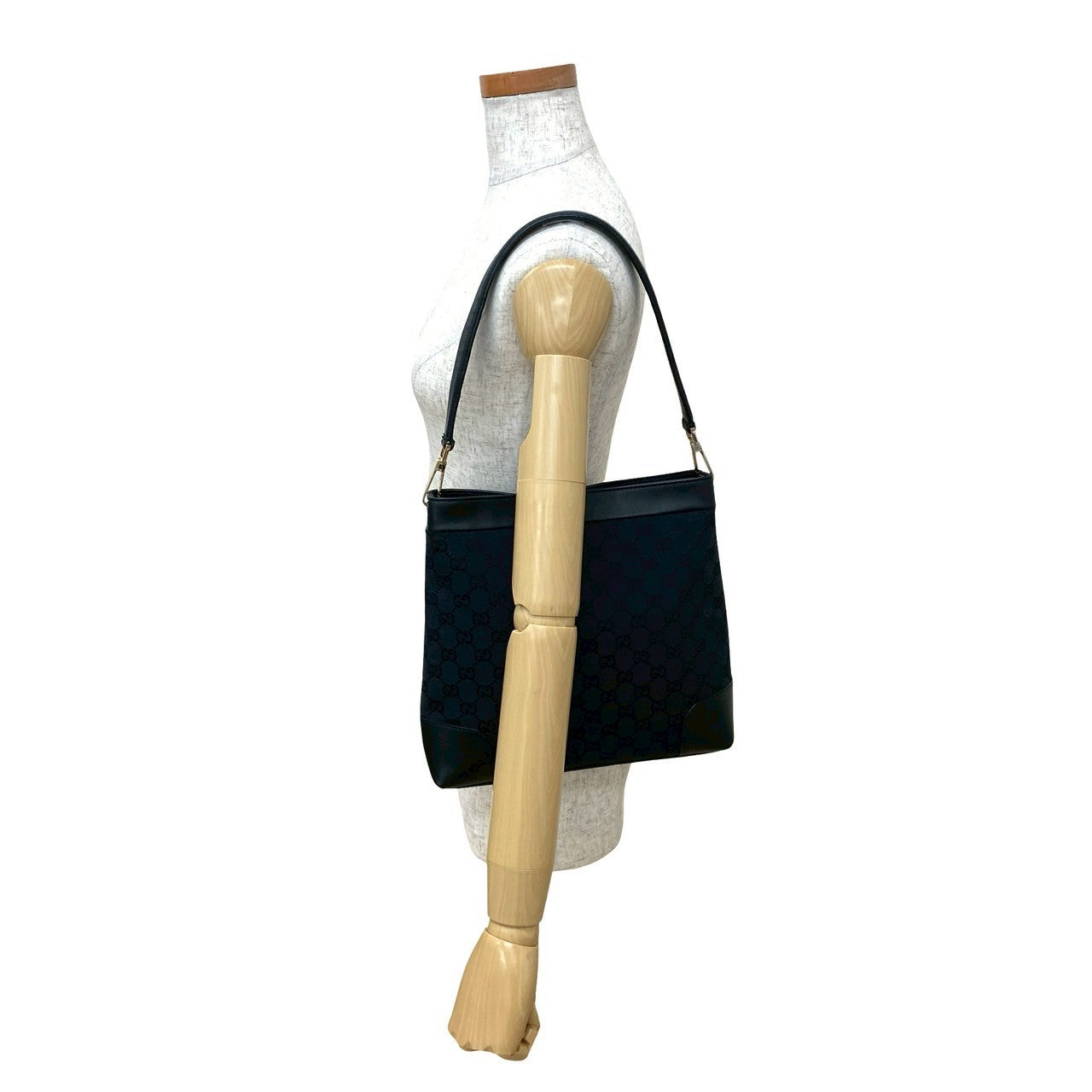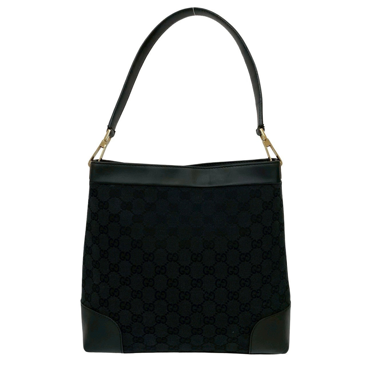 GUCCI Shoulder Bag leather black GG canvas