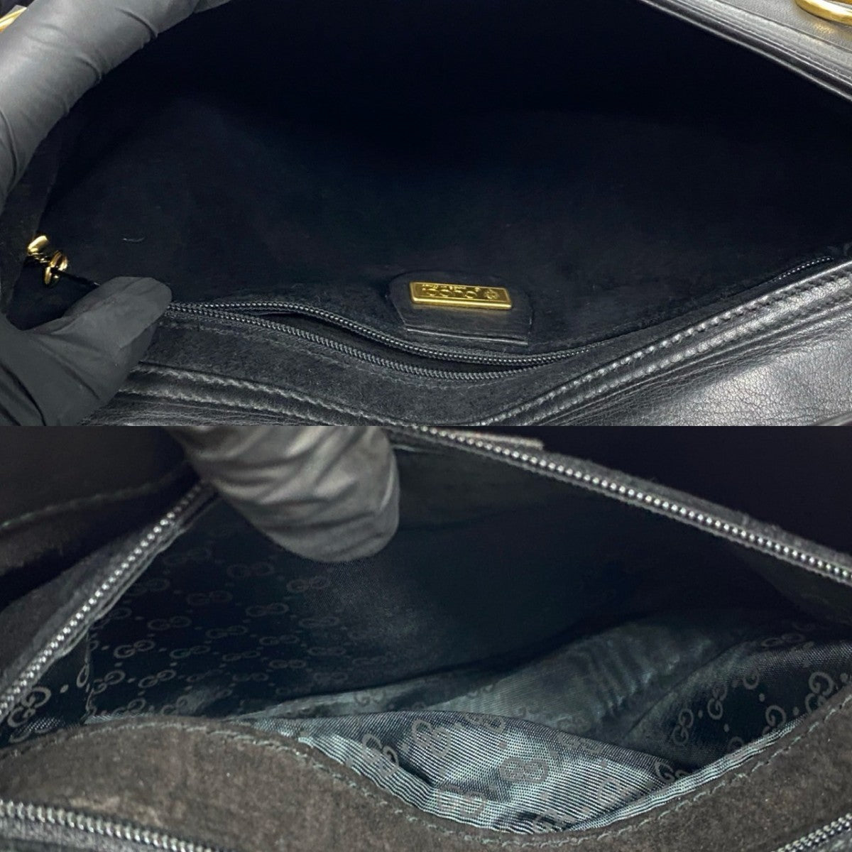 GUCCI Shoulder Bag leather black Horsebit Metal Women Used Authentic