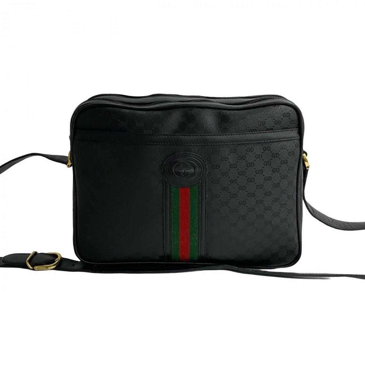 GUCCI Shoulder Bag leather black Micro GG Sherry line Old Gucci Women Used Authentic