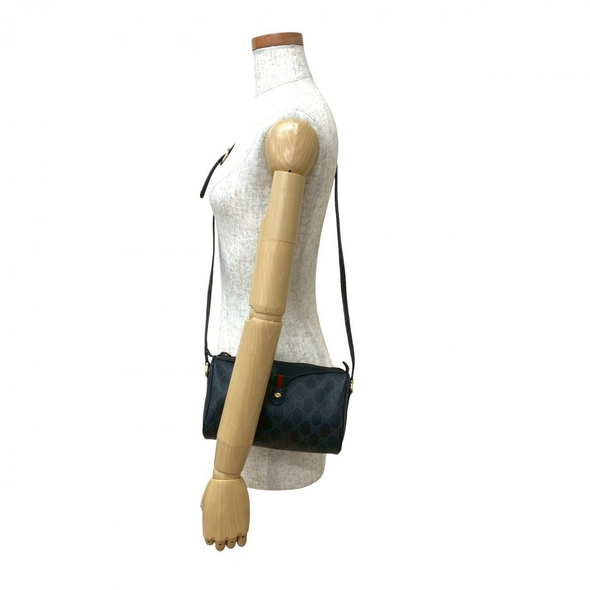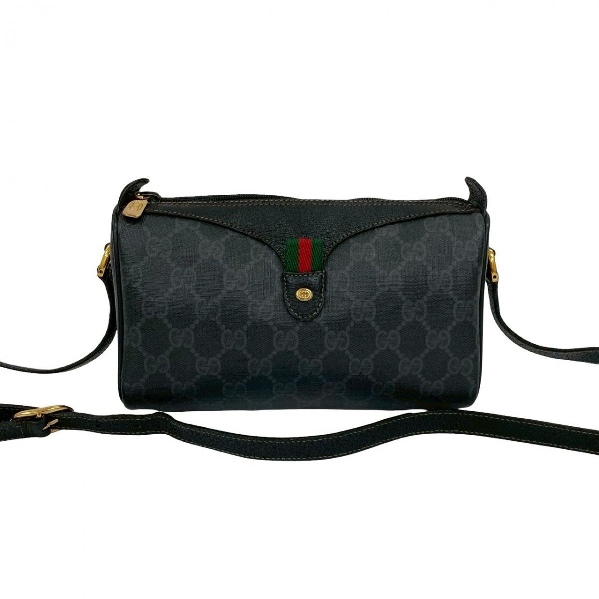 GUCCI Shoulder Bag Leather, PVC black GG logo Pattern Sherry line Women Used Authentic