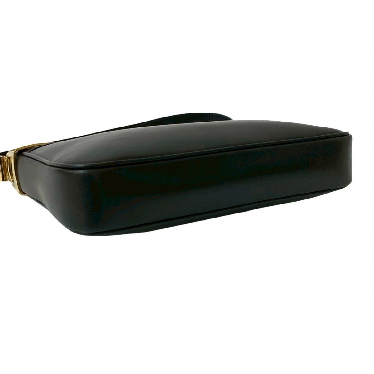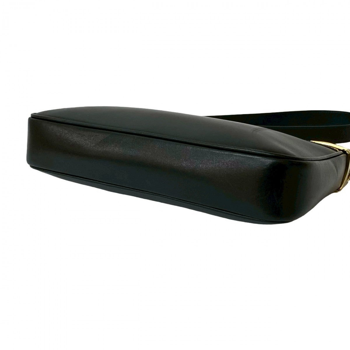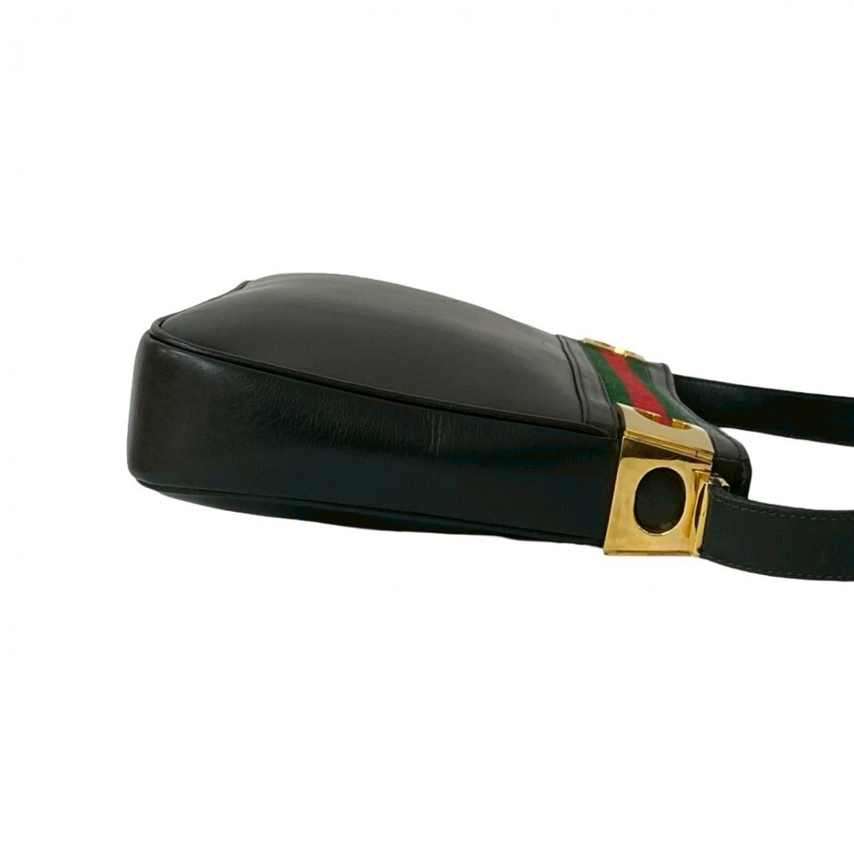 GUCCI Shoulder Bag leather black G logo Metal Sherry line Women Used Authentic