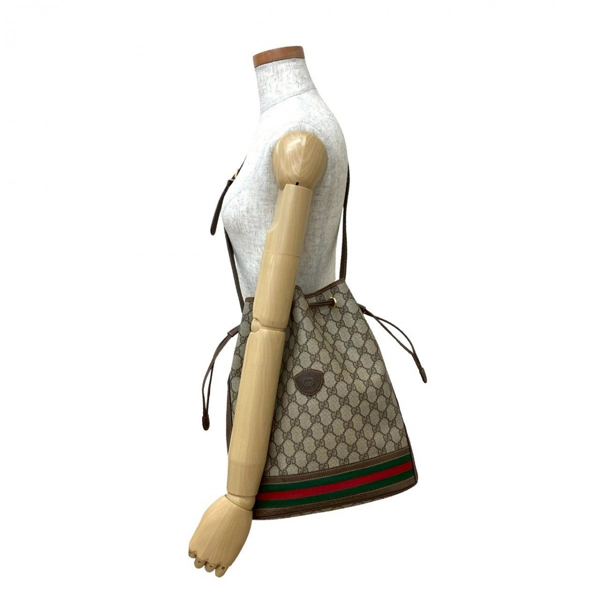 GUCCI Shoulder Bag Leather, PVC Brown GG logo Women Used Authentic