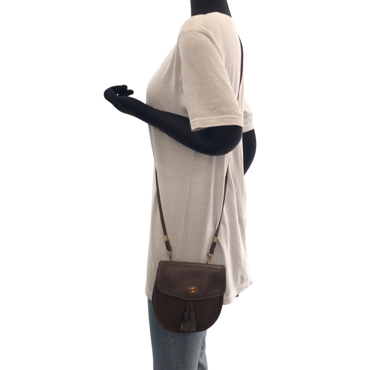 GUCCI Shoulder Bag leather Brown Gold Metal Shoulder Bag pochette Old Gucci Women Used Authentic