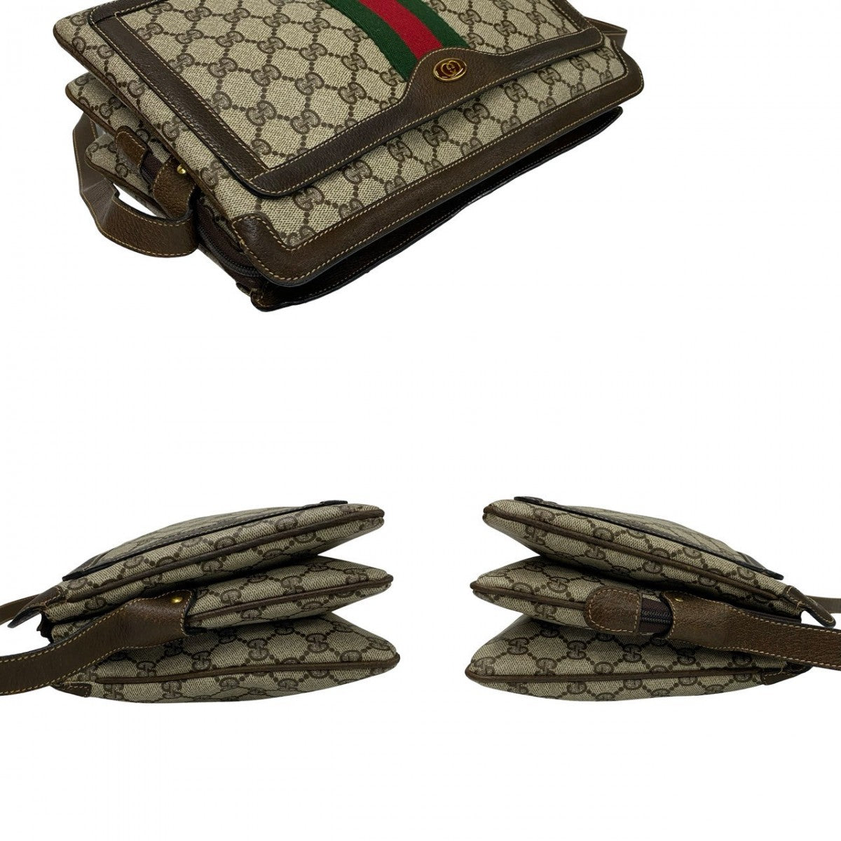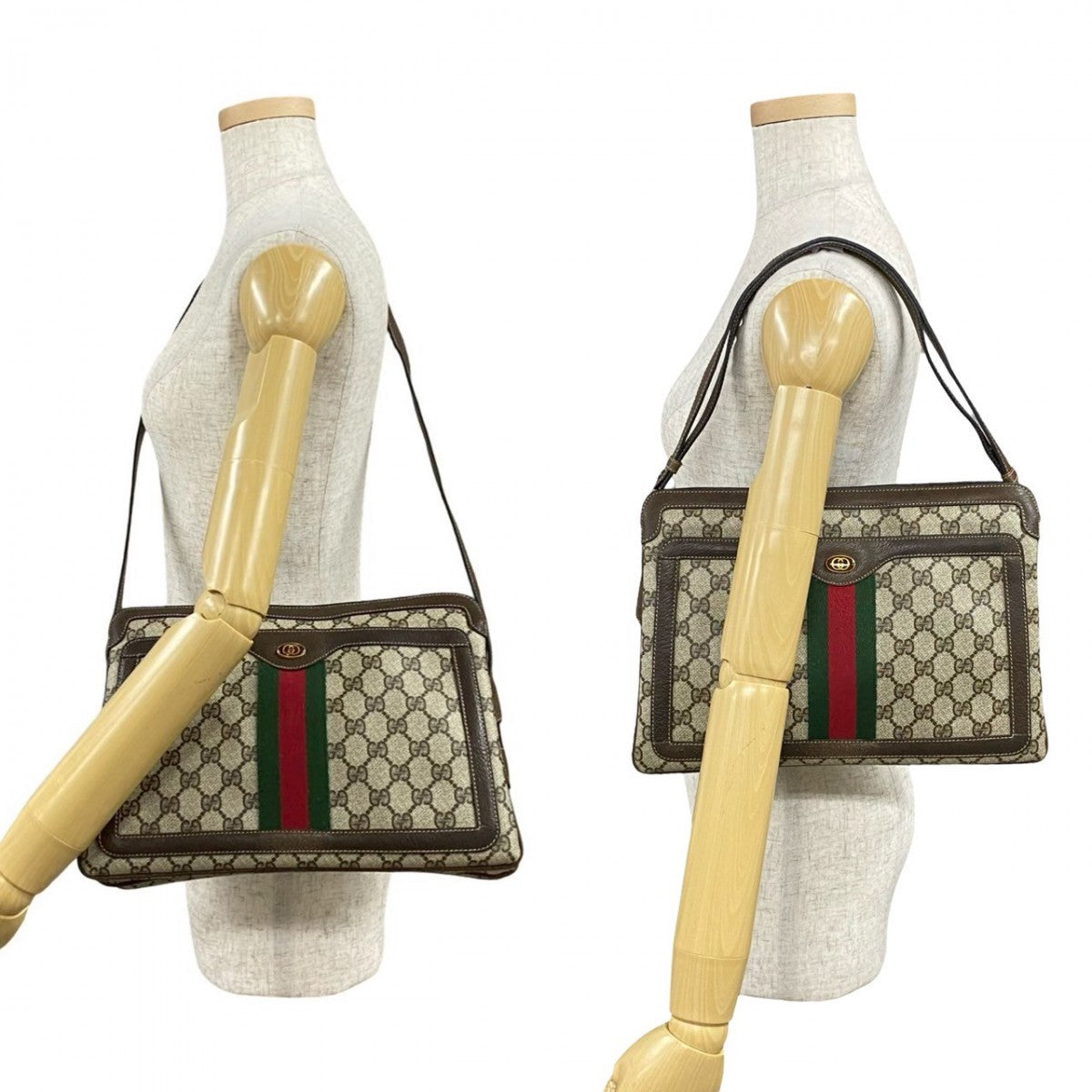 GUCCI Shoulder Bag Leather, PVC Brown GG logo Sherry line Women Used Authentic
