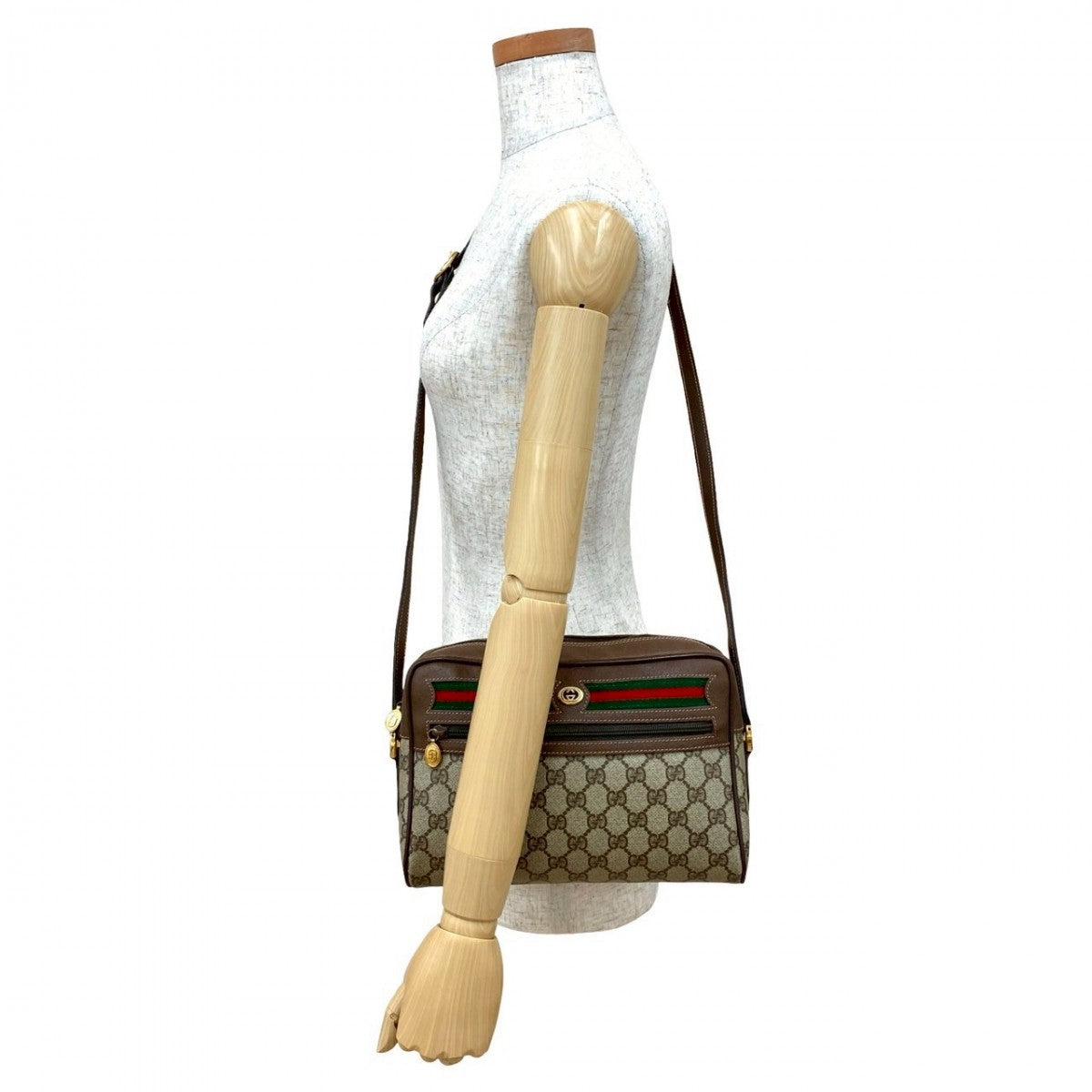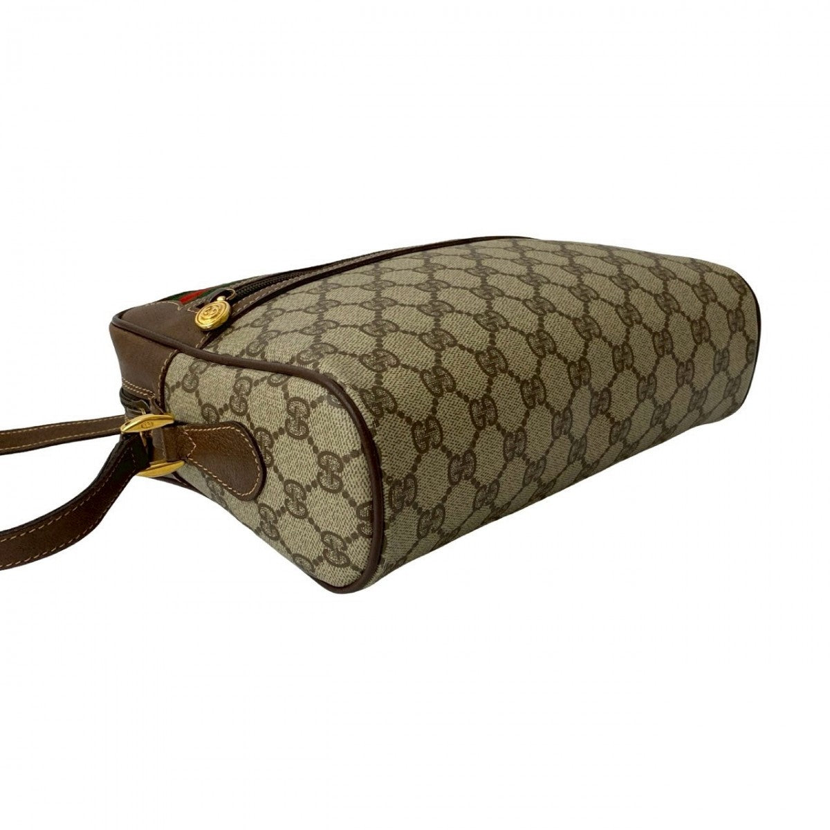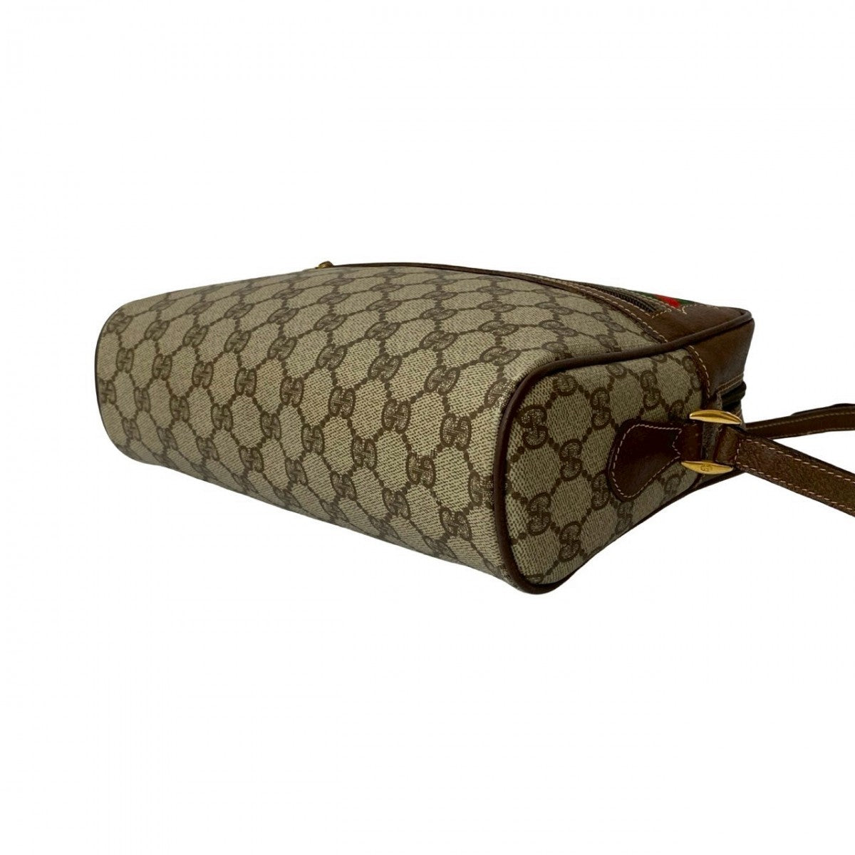 GUCCI Shoulder Bag Leather, PVC Brown GG logo Metal Sherry line Women Used Authentic