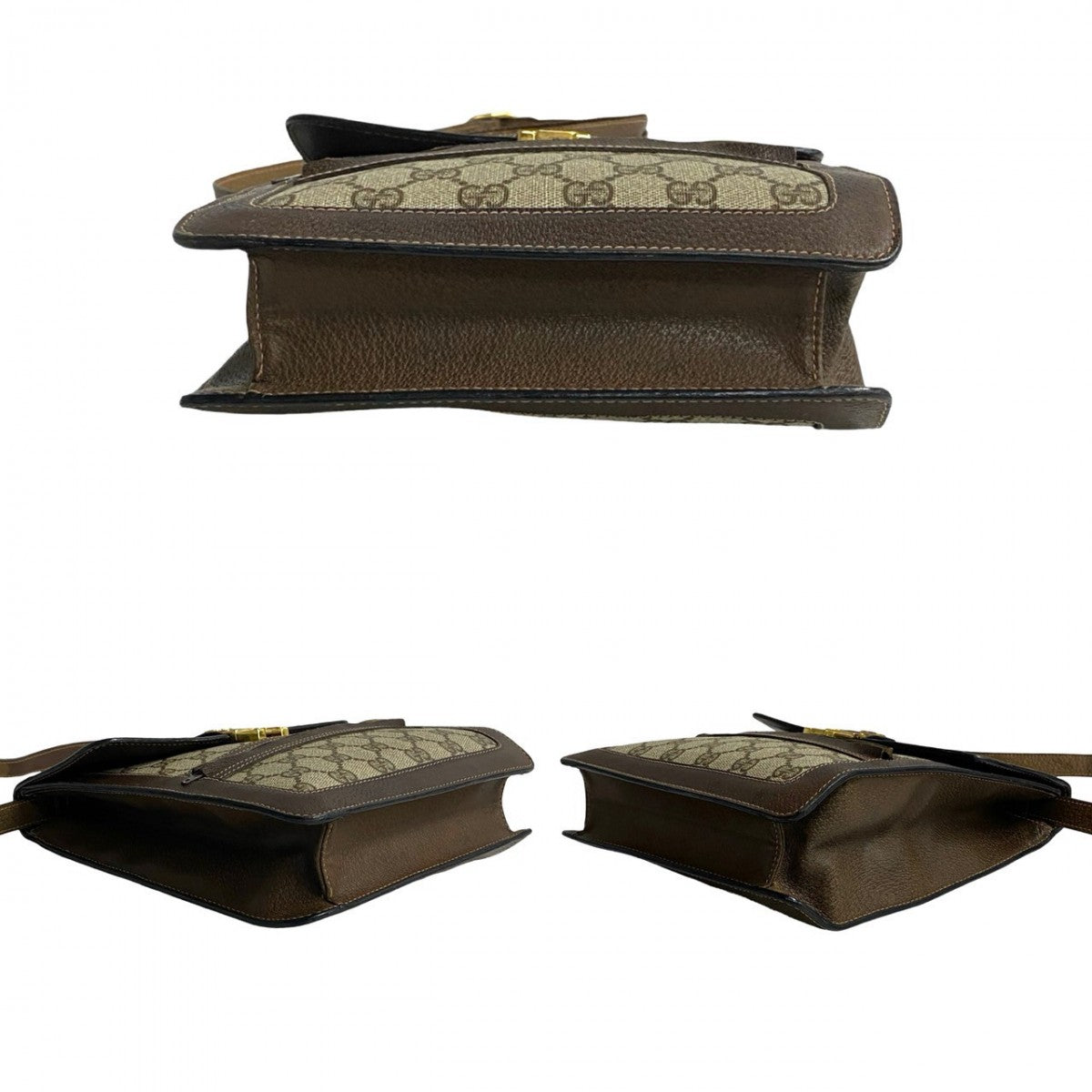 GUCCI Shoulder Bag Leather, PVC Brown GG logo Metal Sherry line Women Used Authentic