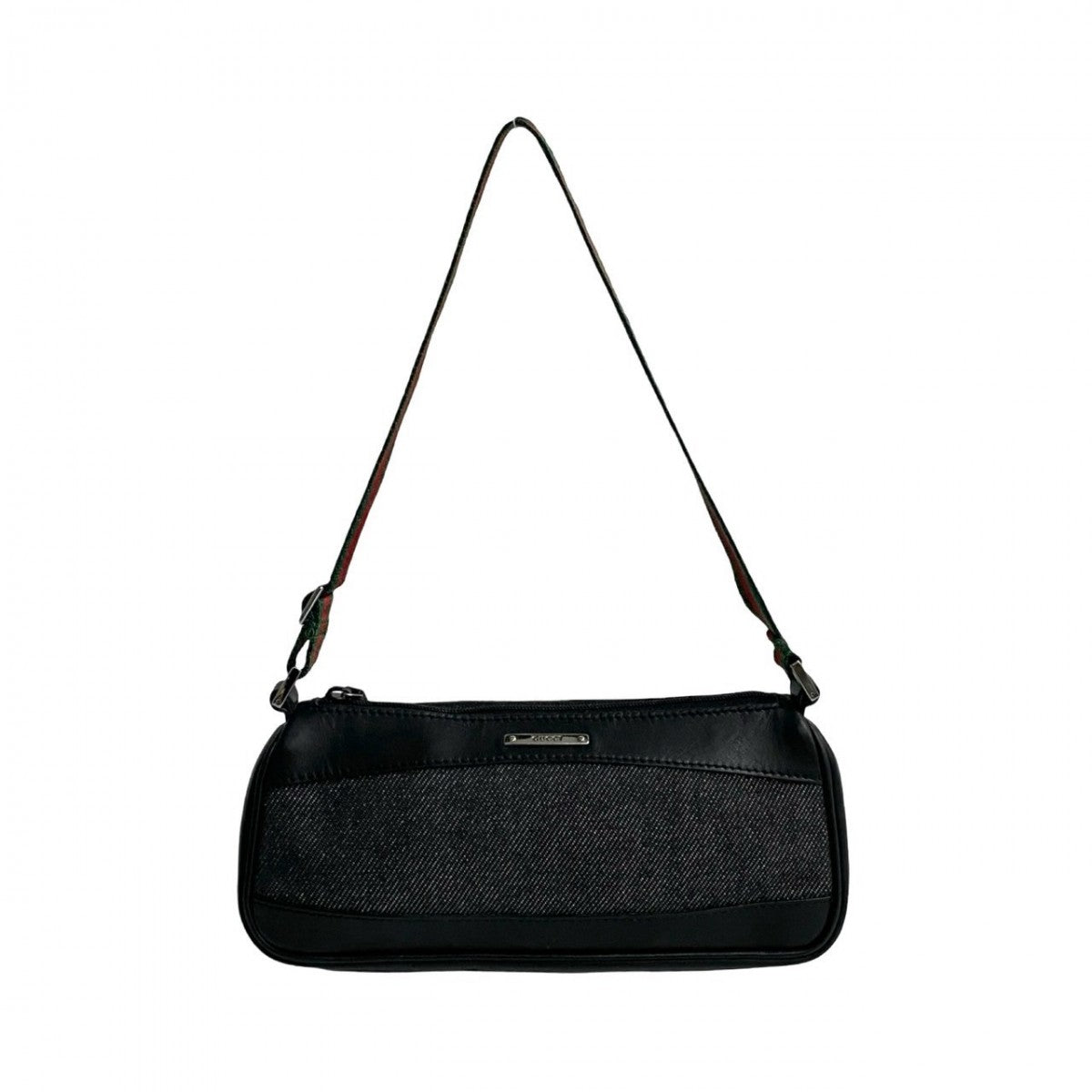 GUCCI Shoulder Bag Leather, Denim black logo Metal Sherry line Women Used Authentic