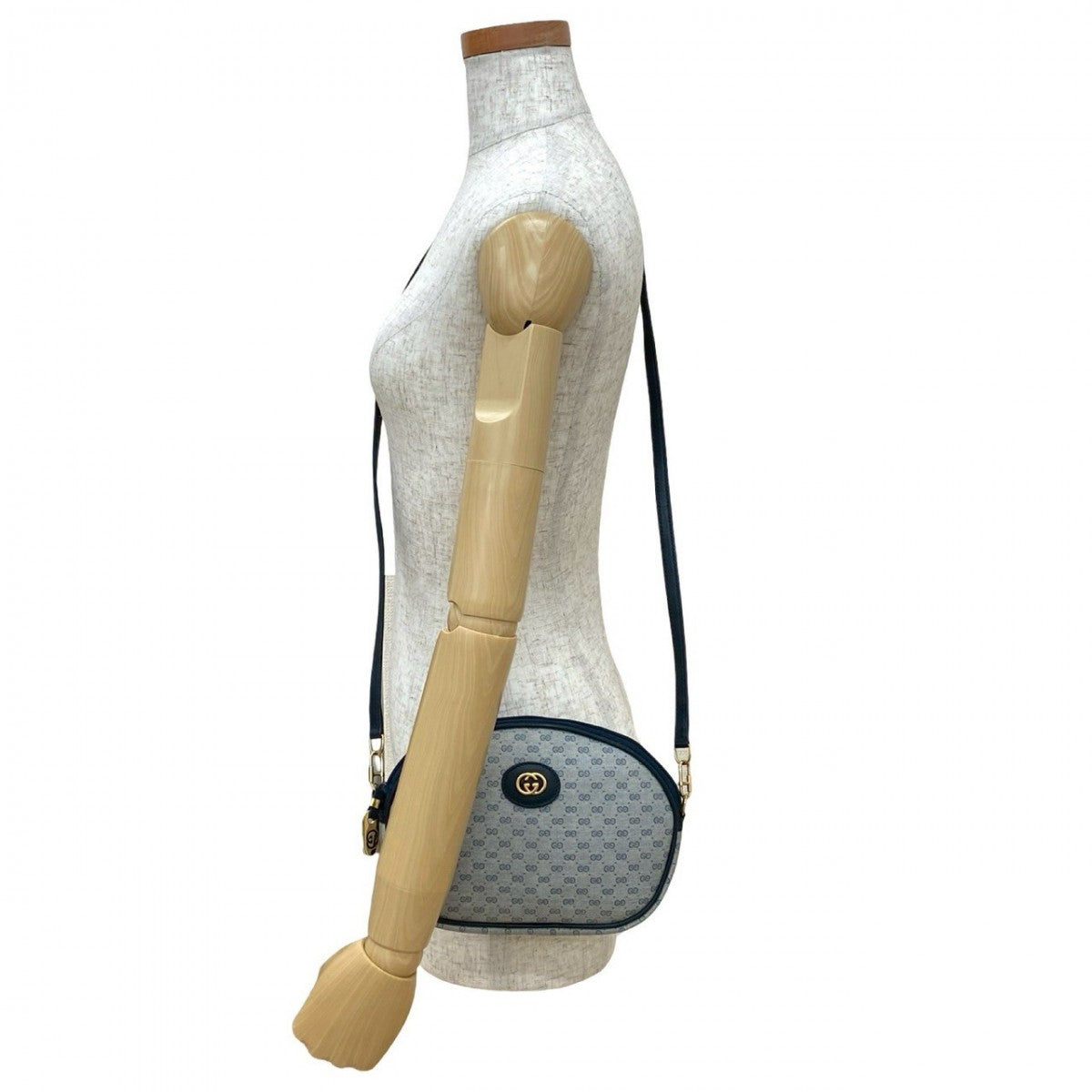 GUCCI Shoulder Bag Leather, PVC Navy Micro GG logo Metal Women Used Authentic
