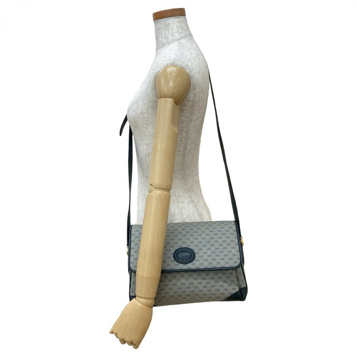 GUCCI Shoulder Bag Leather, PVC Navy Micro GG Women Used Authentic