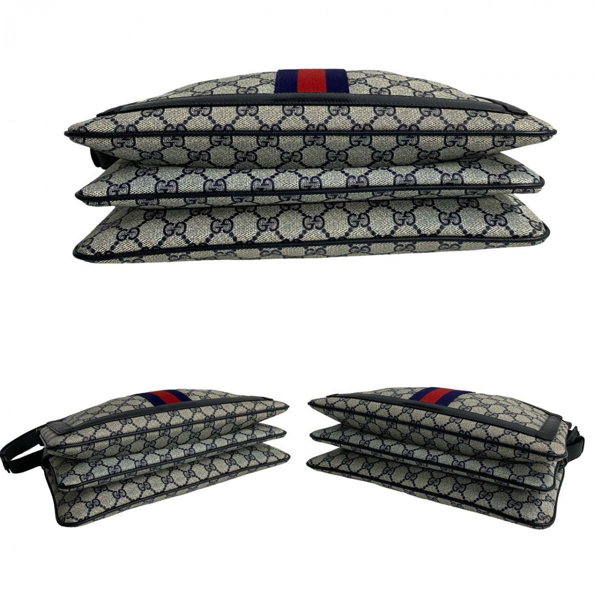 GUCCI Shoulder Bag Leather, PVC Navy Old Gucci GG logoMetal Sherry line Women Used Authentic