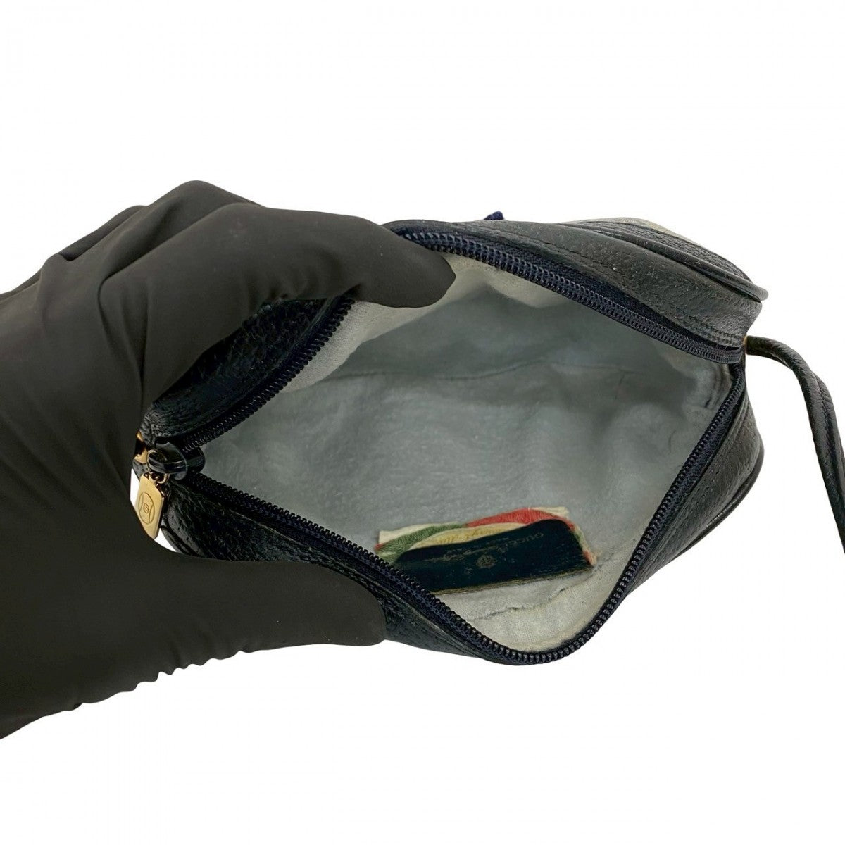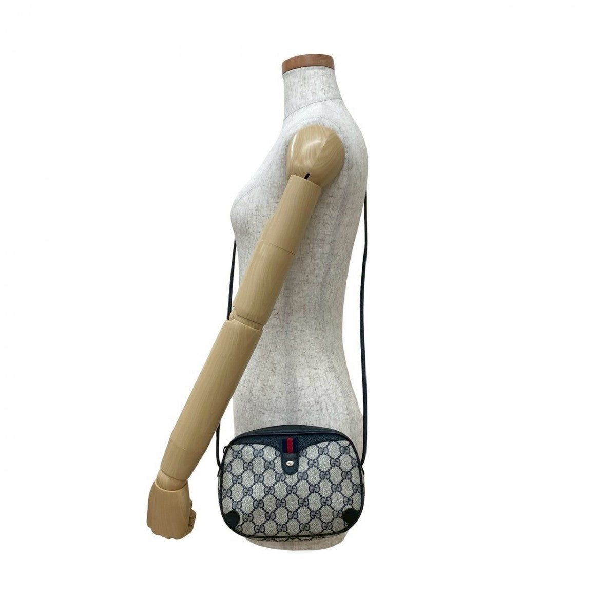 GUCCI Shoulder Bag Leather, PVC Navy GG logo Metal Sherry line Women Used Authentic