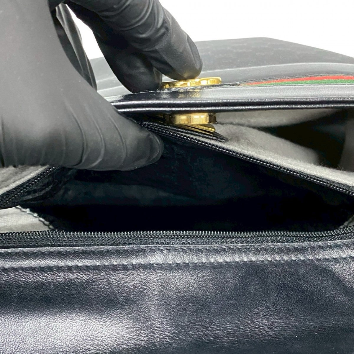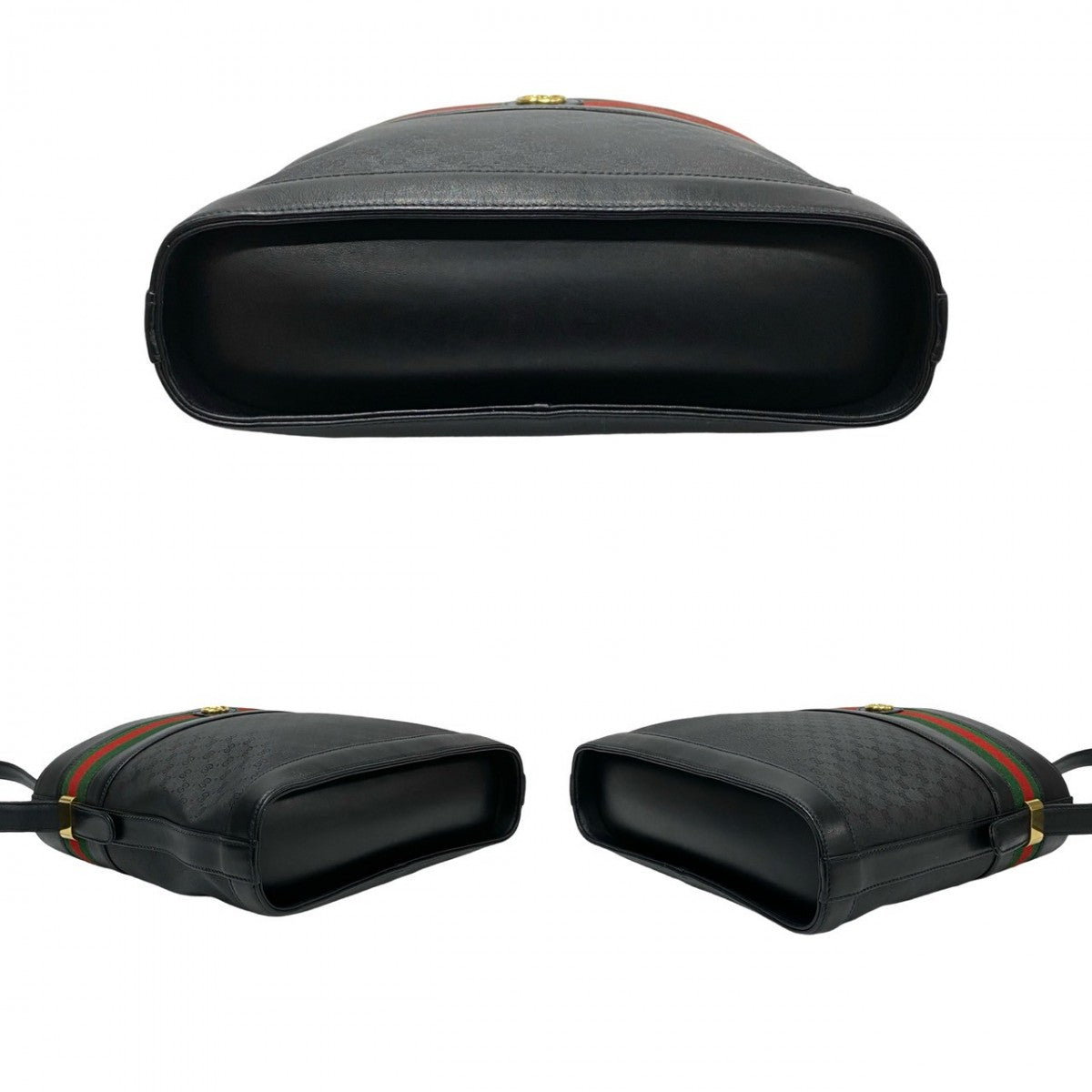 GUCCI Shoulder Bag Leather, PVC black Micro GG logo Pattern Sherry line Women Used Authentic