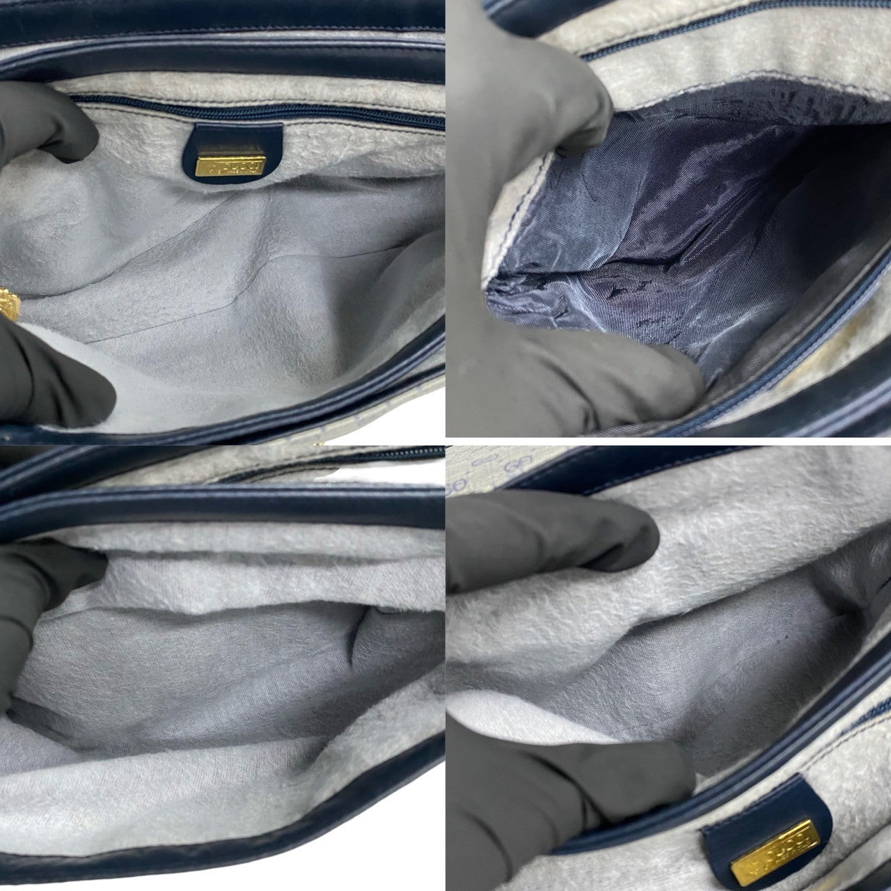GUCCI Shoulder Bag Leather, PVC Navy Micro GG logo Women Used Authentic