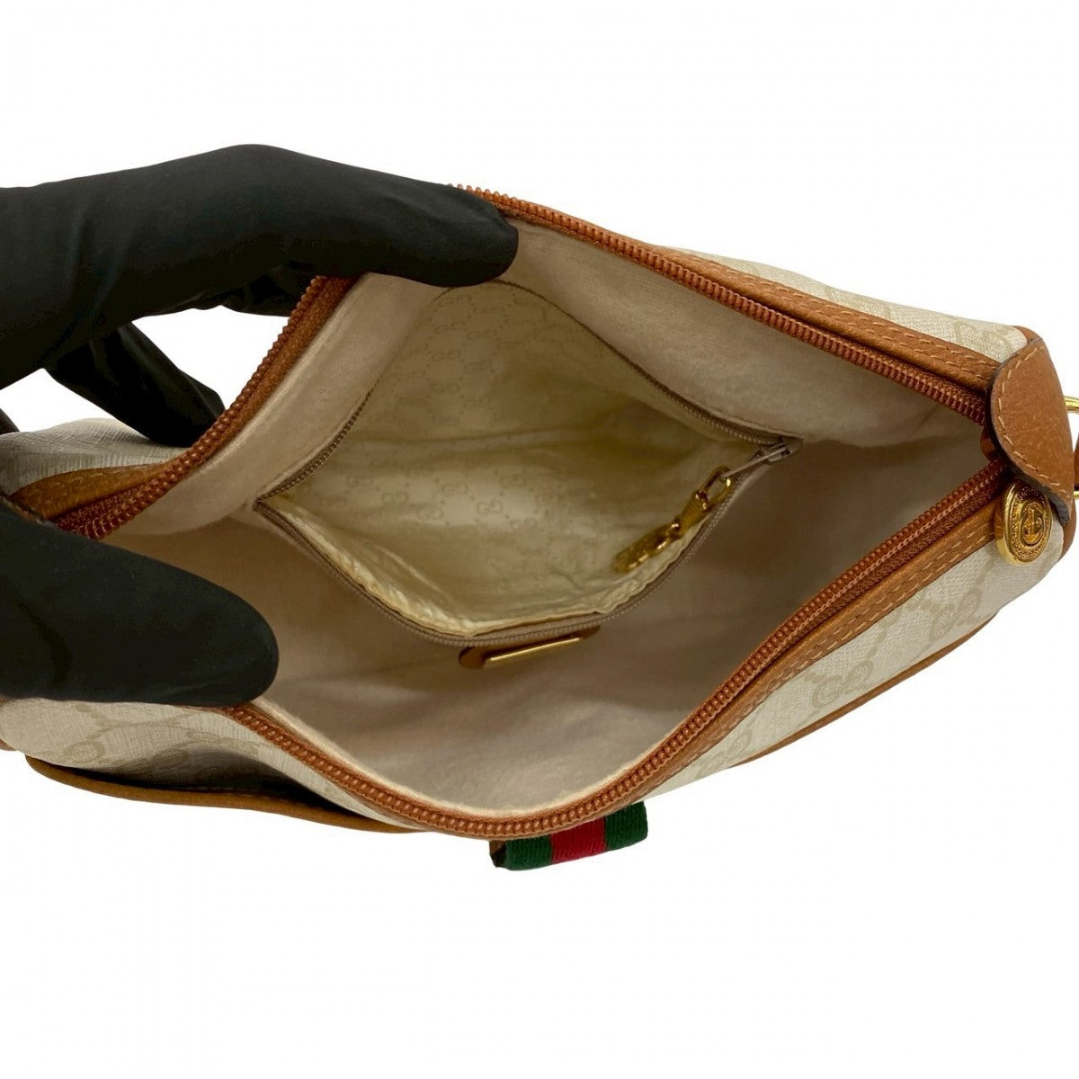 GUCCI Shoulder Bag Leather, PVC white GG logo Metal Sherry line Women Used Authentic