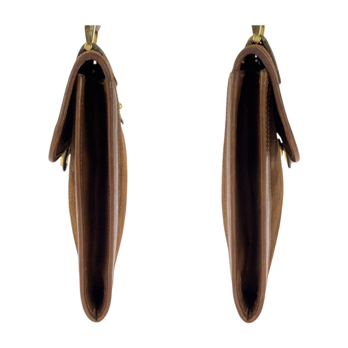 GUCCI Shoulder Bag Suede Brown Gold Metal Old Gucci