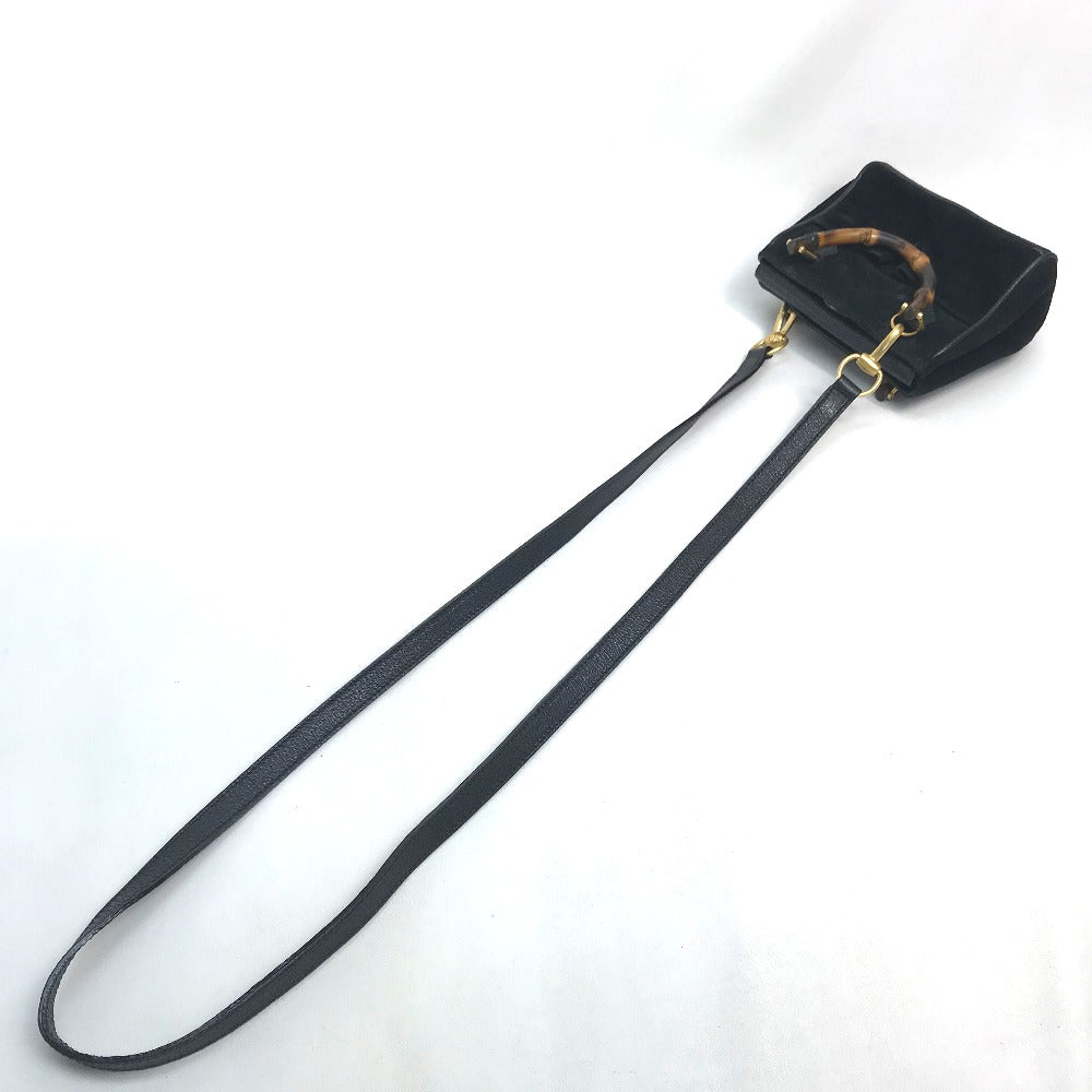 GUCCI Shoulder Bag Suede / leather Black x brown Pochette Bamboo Women Used Authentic