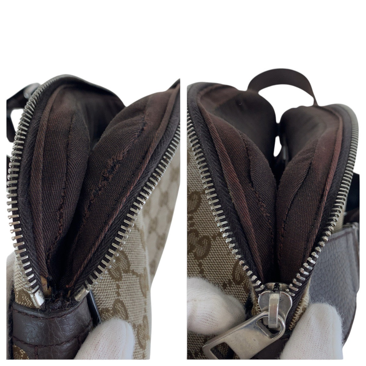 GUCCI Sling bag 449174 GG canvas, leather Brown Silver Metal Sling bag Waist bag mens Used Authentic