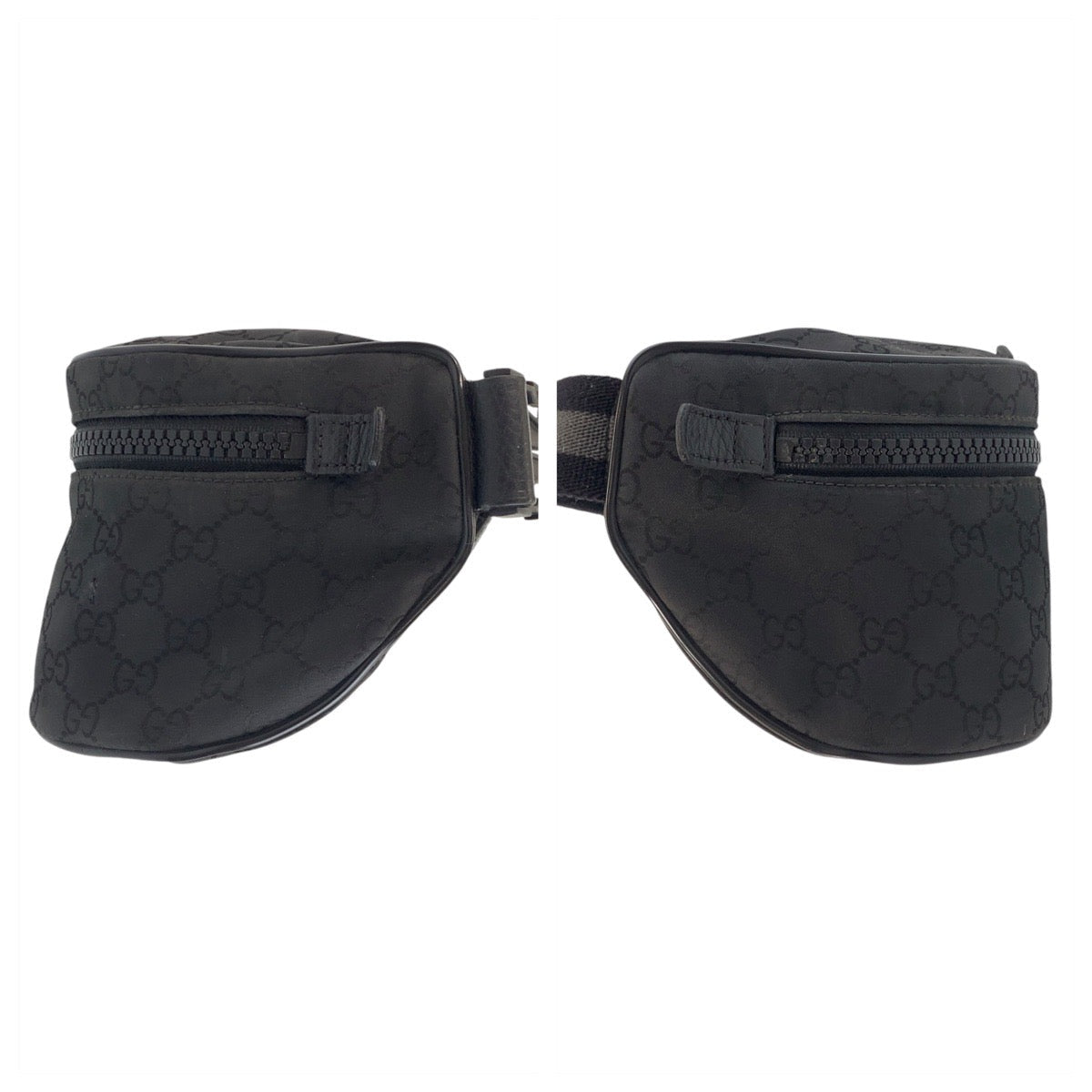 GUCCI Sling bag 449182 GG canvas Black SilverMetal Sling bag Bum bag mens Used Authentic