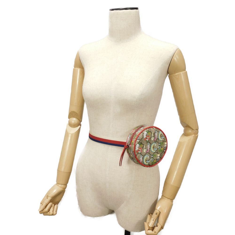 GUCCI Sling bag 502330 GG Supreme canvas (Higuchi Yuko print) x calf leather beige Yuko Higuchi Children's GG Supreme Round Mini Waist Pouch