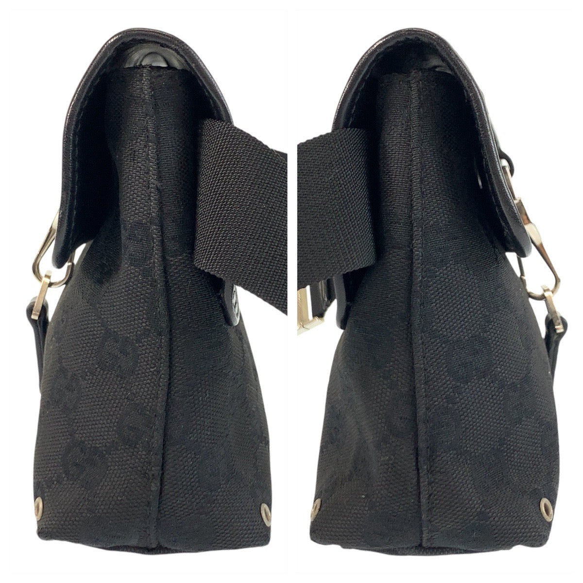 GUCCI Sling bag 92543 GG canvas Black SilverMetal Sling bag Bum bag Women Used Authentic