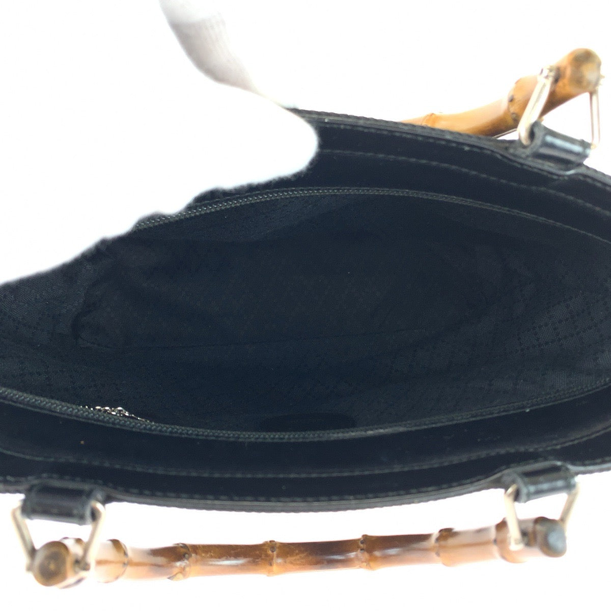 GUCCI Tote Bag 000 1998 0540 Canvas, Leather Black Silver Metal Tote Bag handbag Bamboo Women Used Authentic