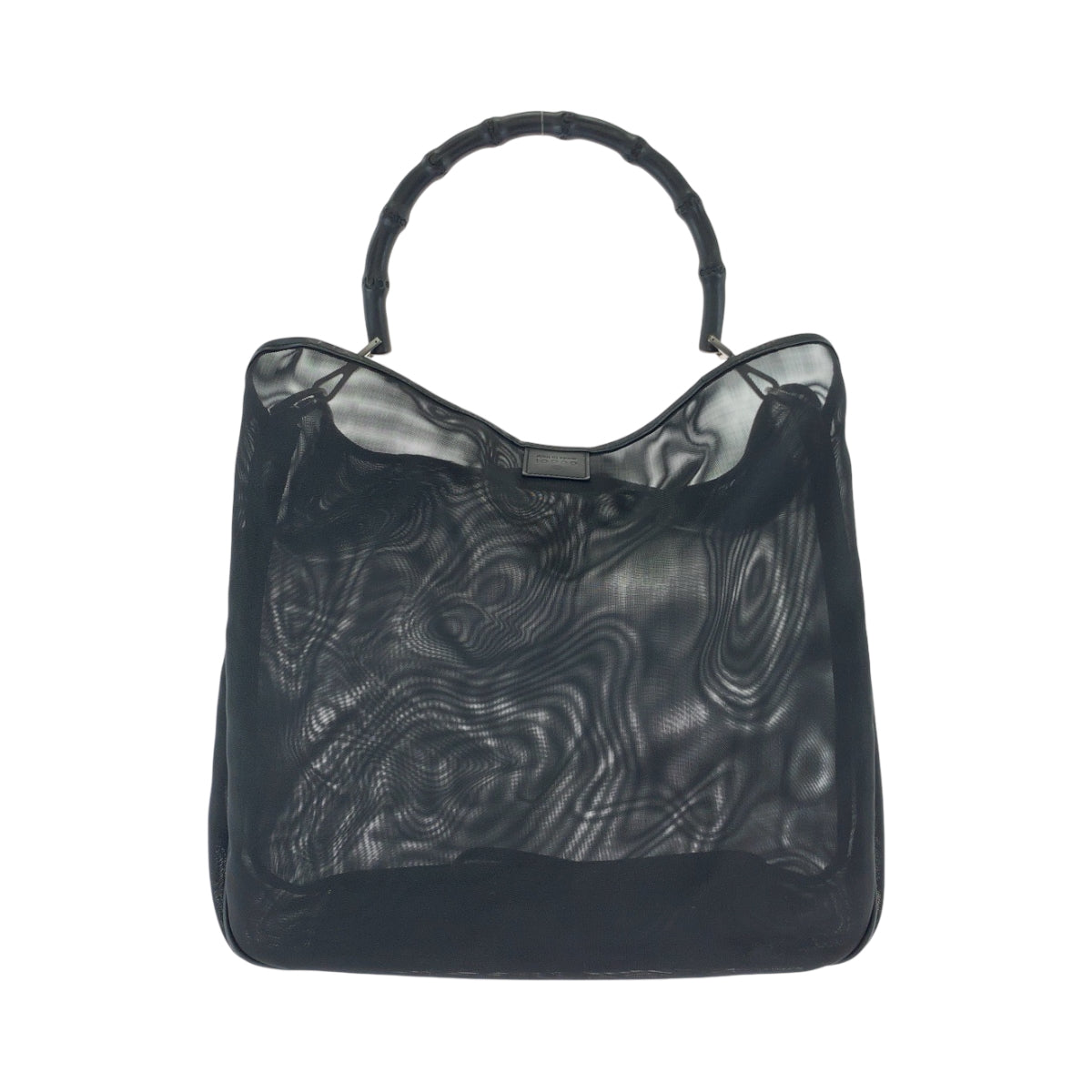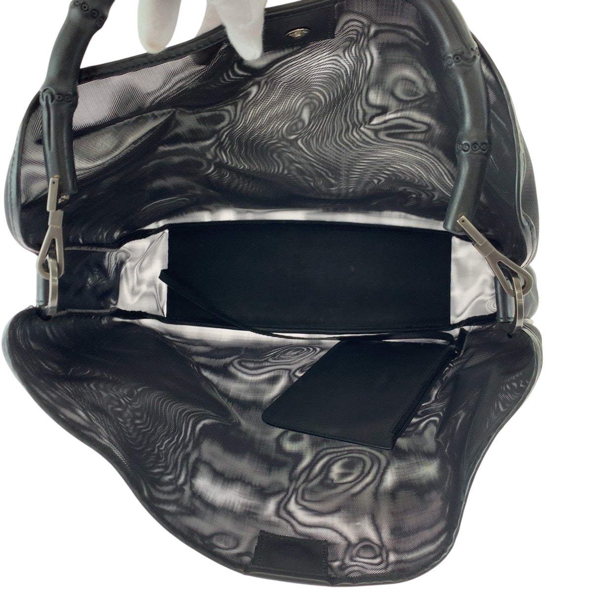 GUCCI Tote Bag 001 3303 Nylon Black SilverMetal Bamboo mesh