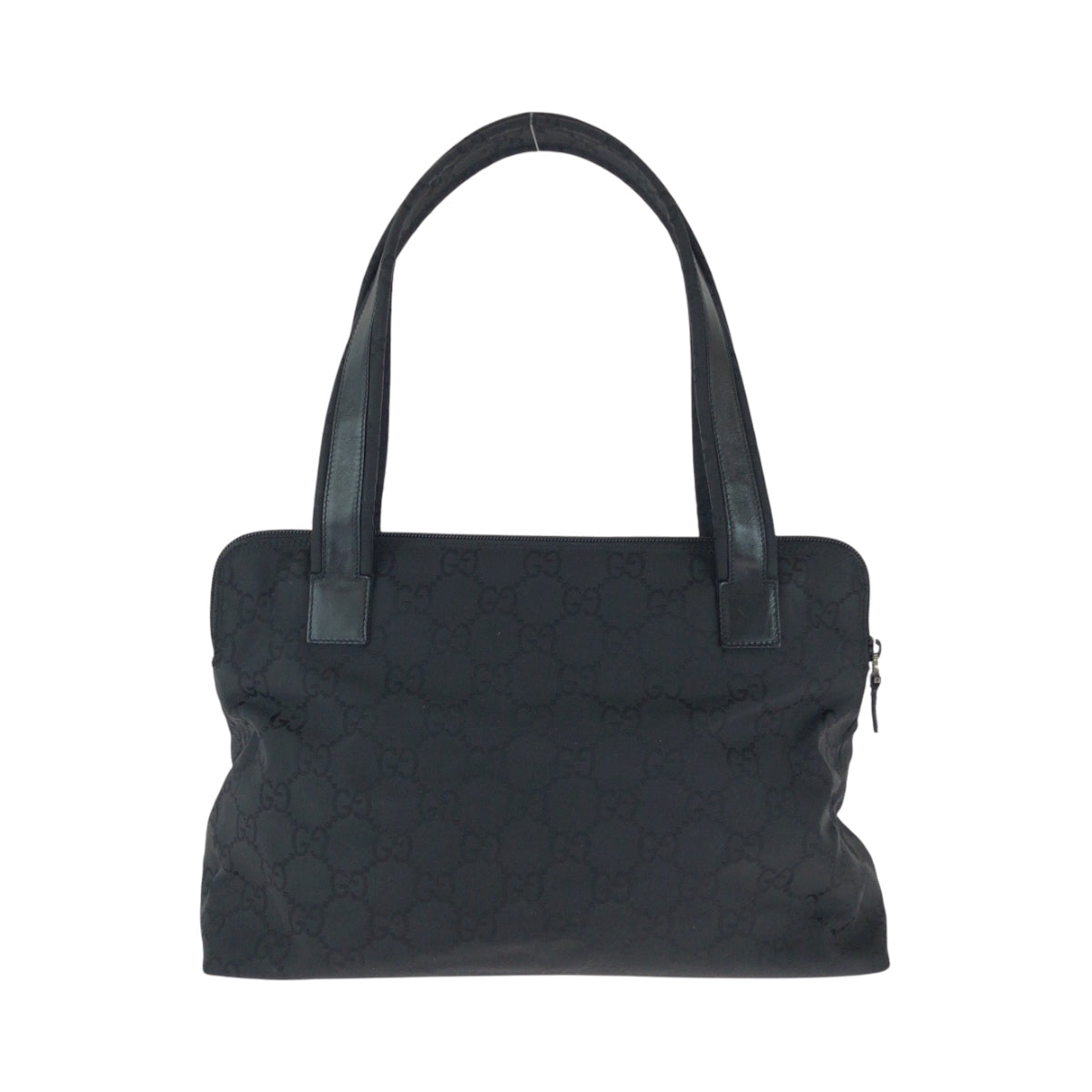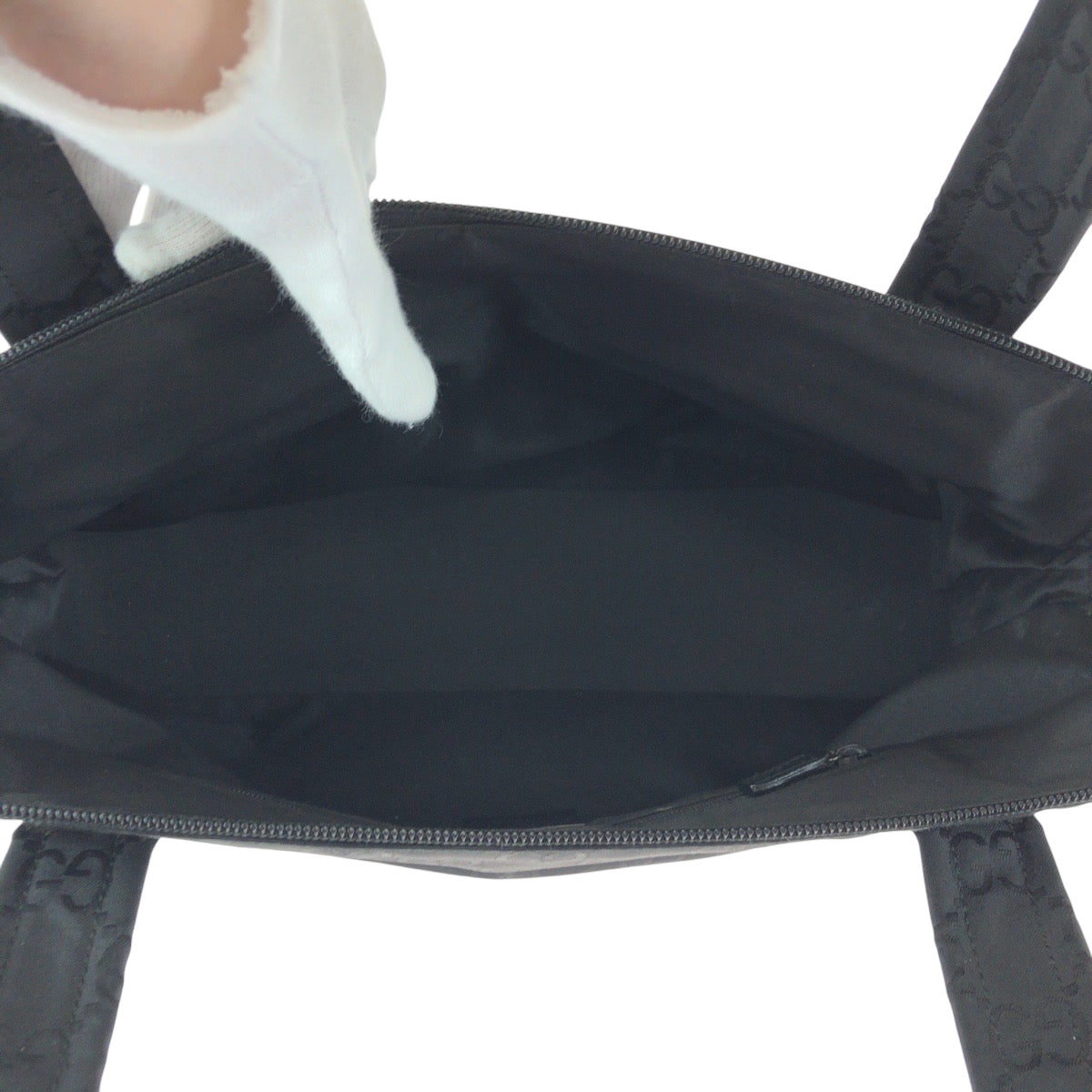 GUCCI Tote Bag 001 3705 Nylon, Leather Black Silver Metal Tote Bag Handbag Shoulder Bag Women Used Authentic