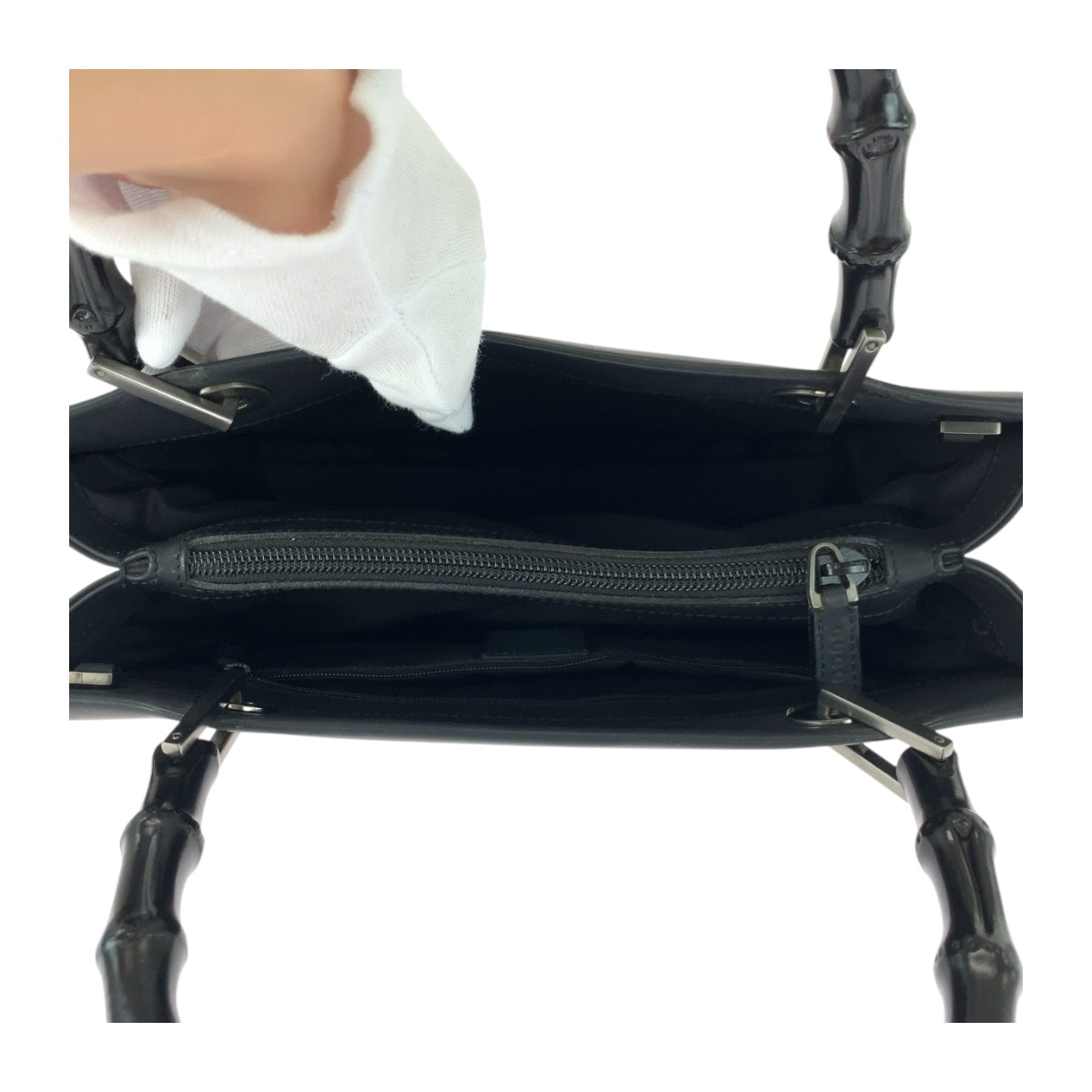 GUCCI Tote Bag 002 1010 leather Black SilverMetal Bamboo
