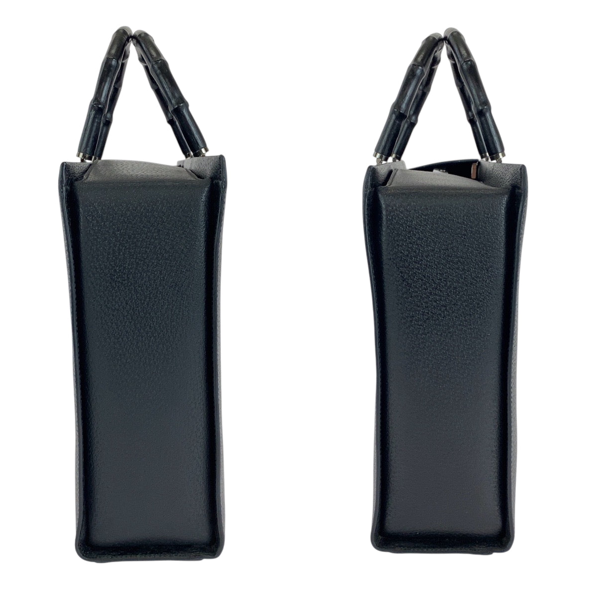 GUCCI Tote Bag 002 1034 leather Black SilverMetal Tote Bag Handbag Shoulder Bag 2way Bamboo Women Used Authentic